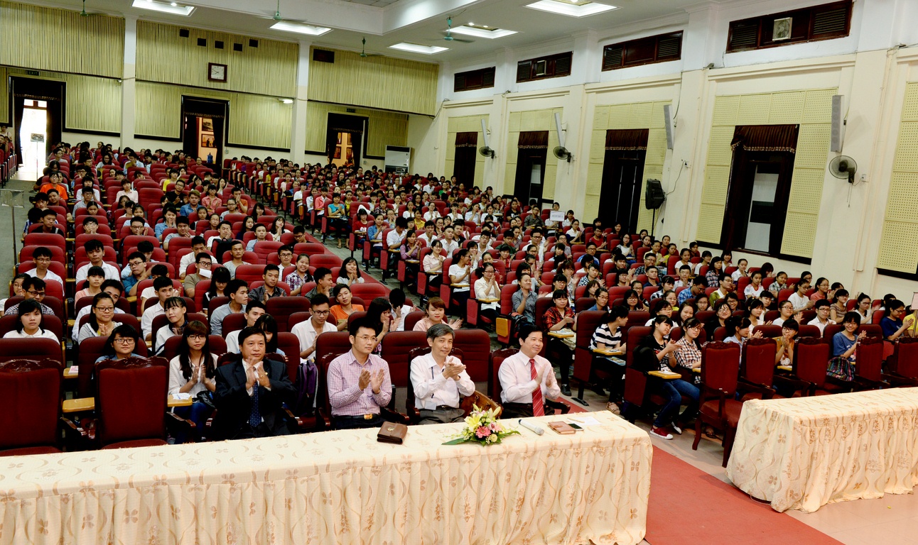 Đến dự chương trình có GS.TS.Phạm Quang Trung – Phó Hiệu trưởng, PGS.TS.Bùi Đức Triệu – Trưởng Phòng Quản lý đào tạo cùng đại diện các đơn vị, các khoa bộ môn quản lý sinh viên, các em  sinh viên khối I – khối đầu tiên trong 10 khối tham dự khoá học.