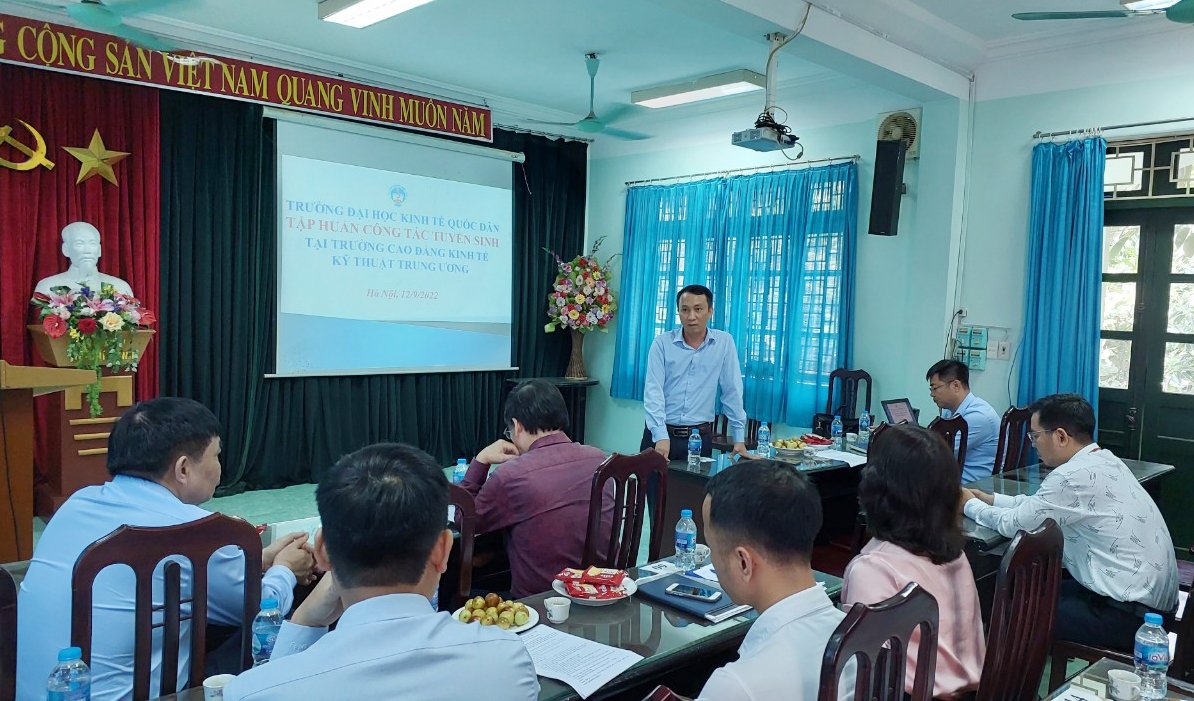 Sáng ngày 12/9/2022, Khoa Đại học Tại chức – Trường Đại học Kinh tế Quốc dân phối hợp với Trường Cao đẳng Kinh tế – Kỹ thuật Trung ương tổ chức Chương trình tập huấn và xúc tiến tuyển sinh năm 2022.