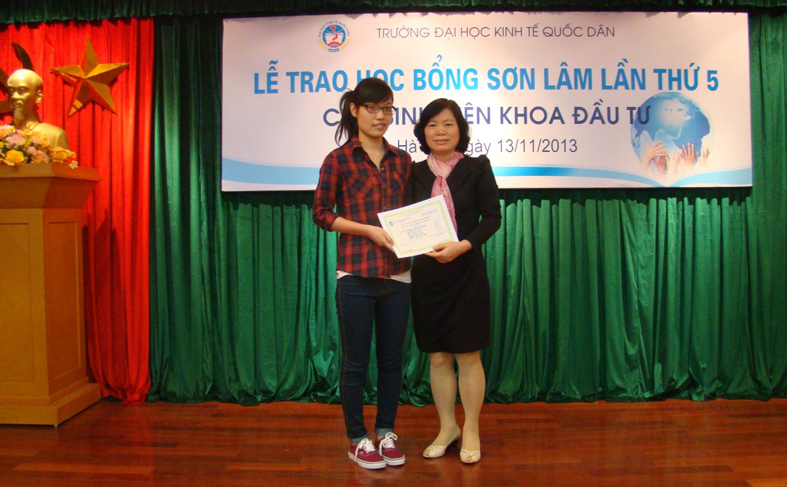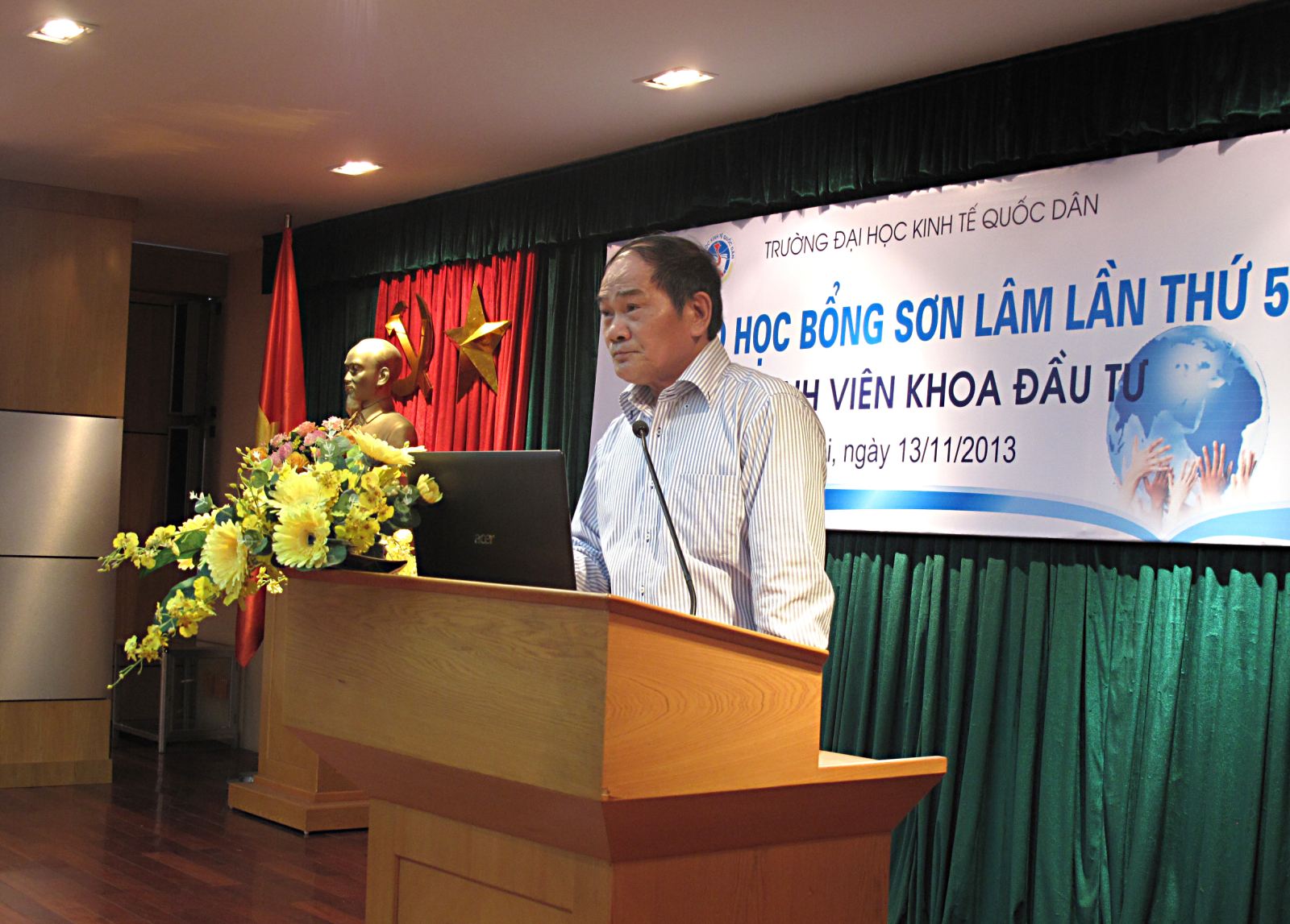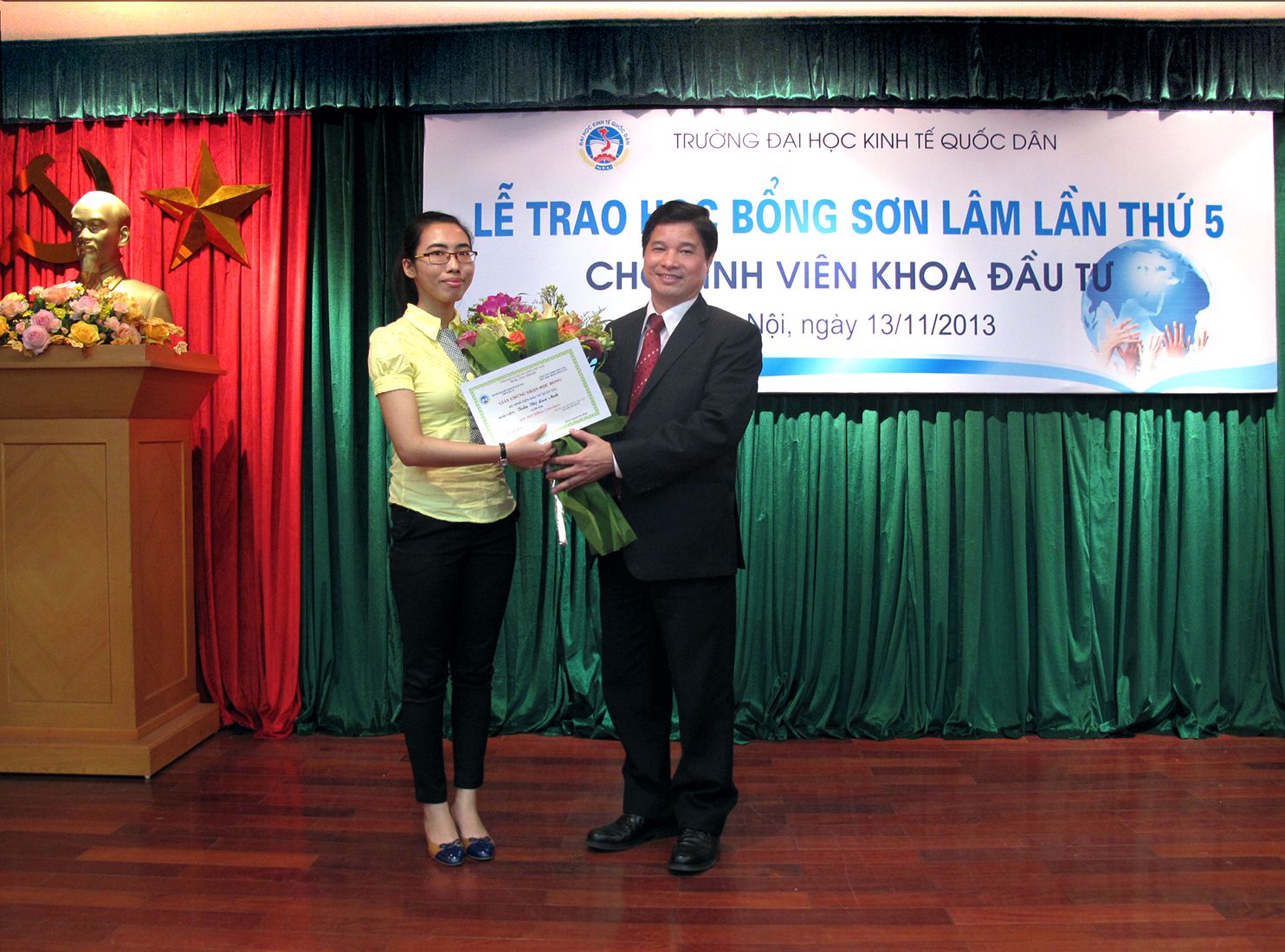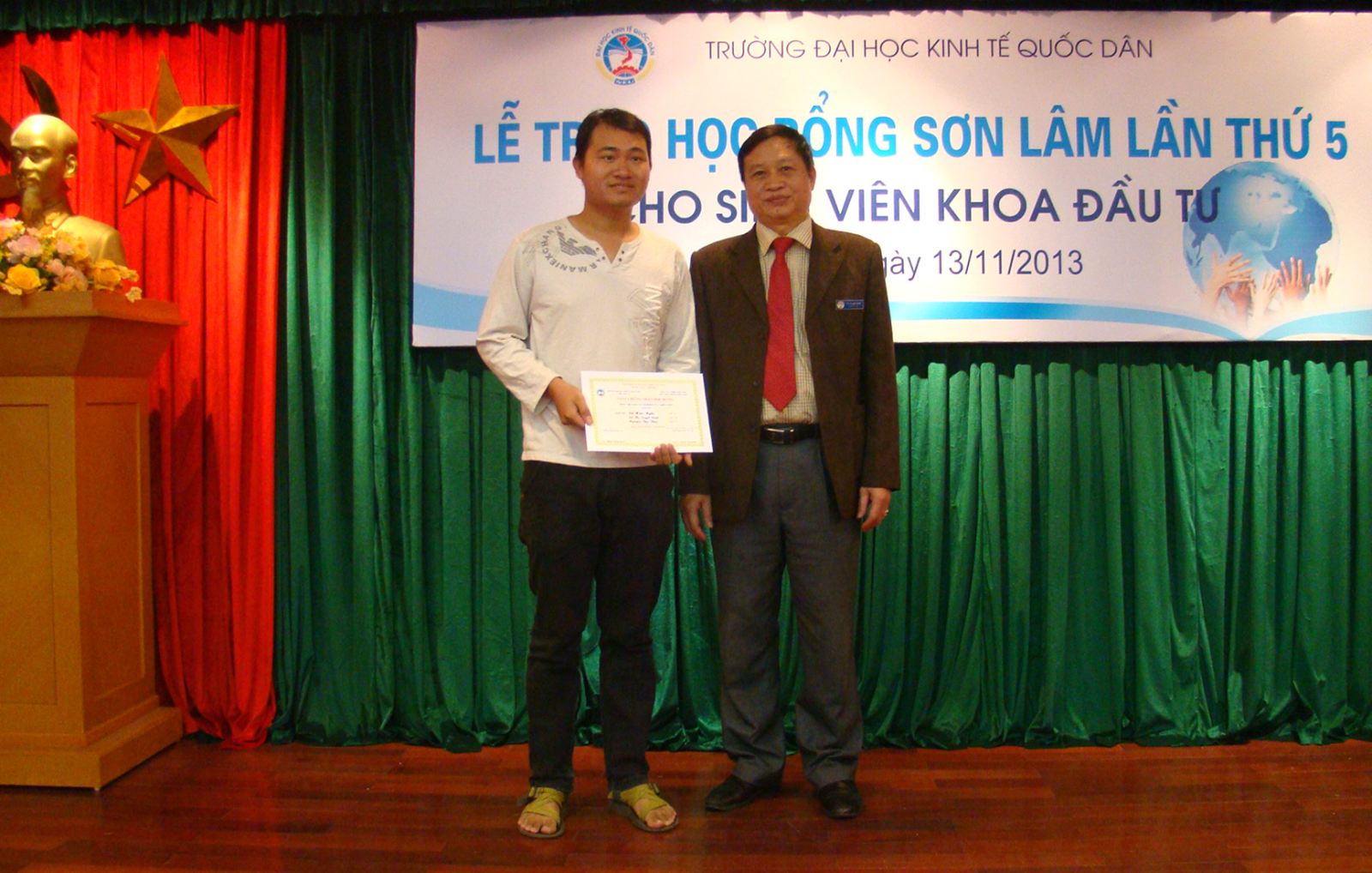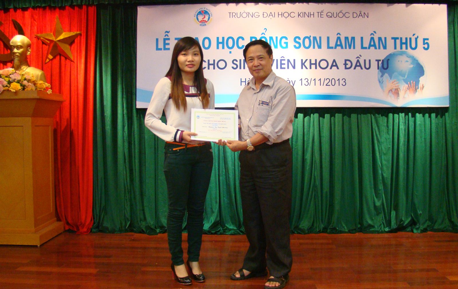 Chiều ngày 13/11/2013, tại Phòng họp G2 Nhà 10, Khoa Đầu tư đã long trọng tổ chức Lễ trao học bổng Sơn Lâm lần thứ 5 cho sinh viên có hoàn cảnh khó khăn và sinh viên tài năng.