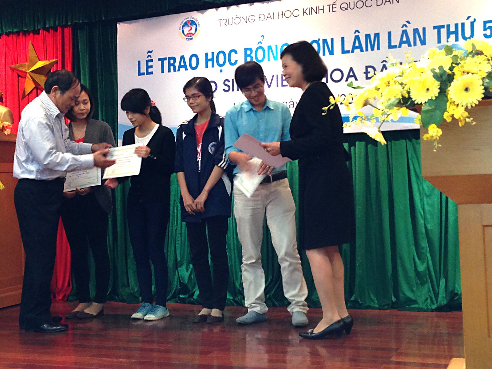 Nhà Tài trợ Nguyễn văn Đồng và phu nhân, Giáo sư Phạm Quang Trung cùng Ban lãnh đạo Khoa Đầu tư đã trực tiếp trao những xuất học bổng quý giá cho sinh viên. Tại buổi trao học bổng lần thứ 5 này, đã có 15 sinh viên có hoàn cảnh vượt khó được nhận học bổng, mỗi xuất 7 triệu đồng; có 1 nữ sinh viên xuất sắc, 1 nữ sinh viên tài năng và 3 sinh viên có thành tích NCKH xuất sắc được nhận học bổng, mỗi suất trị giá 3 triệu đồng.