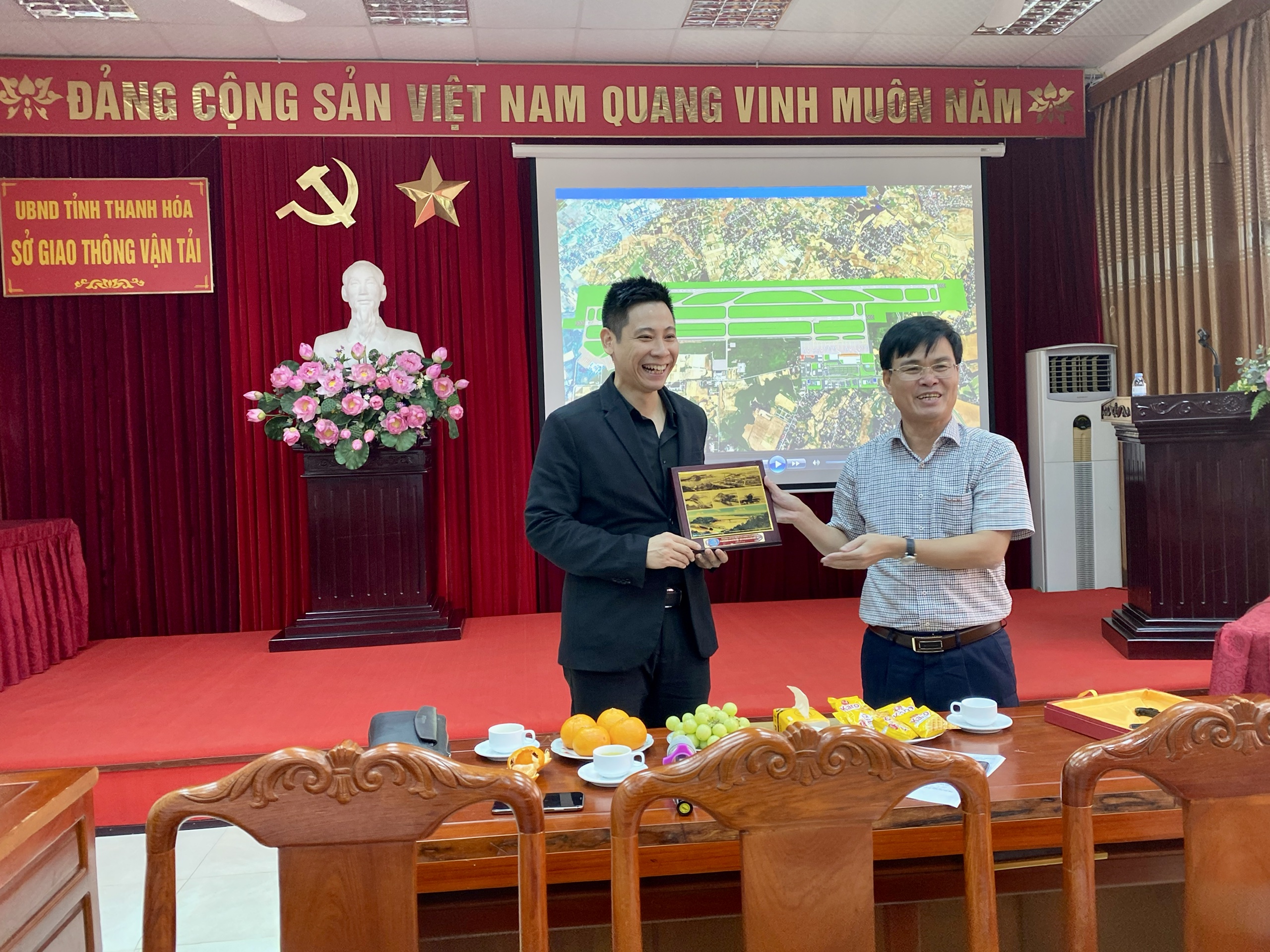 Ngay trong buổi chiều 02/11/2020 đoàn đã có buổi làm việc với Sở Giao thông – Vận tải TP Thanh Hoá. Tại buổi làm việc, ông Nguyễn Đức Trung – Bí thư Đảng ủy, Phó Giám đốc Sở GT-VT đã giới thiệu về tình hình phát triển tại TP Thanh Hoá. Trong những năm trở lại đây, Thanh Hóa chú trọng xây dựng hạ tầng kỹ thuật đô thị theo hướng đồng bộ và ngày càng hiện đại, hoàn thiện hệ thống cơ sở hạ tầng trên mọi lĩnh vực, huy động nhiều nguồn vốn đầu tư các công trình, dự án trên địa bàn, tạo bước chuyển biến tích cực cho bộ mặt kiến trúc đô thị.Thanh Hóa có hệ thống giao thông đa dạng gồm đường bộ, đường sắt, đường biển và đường hàng không với cảng hàng không dân dụng Thọ Xuân… đã giúp địa phương thúc đẩy hoạt động kinh tế, văn hóa, du lịch, tạo mối giao lưu kinh tế giữa các khu vực trong tỉnh, liên tỉnh. Về đường bộ, nhiều dự án có tính chất lan tỏa được đầu tư xây dựng để kết nối các vùng kinh tế, các khu công nghiệp trọng điểm, khu du lịch của địa phương.