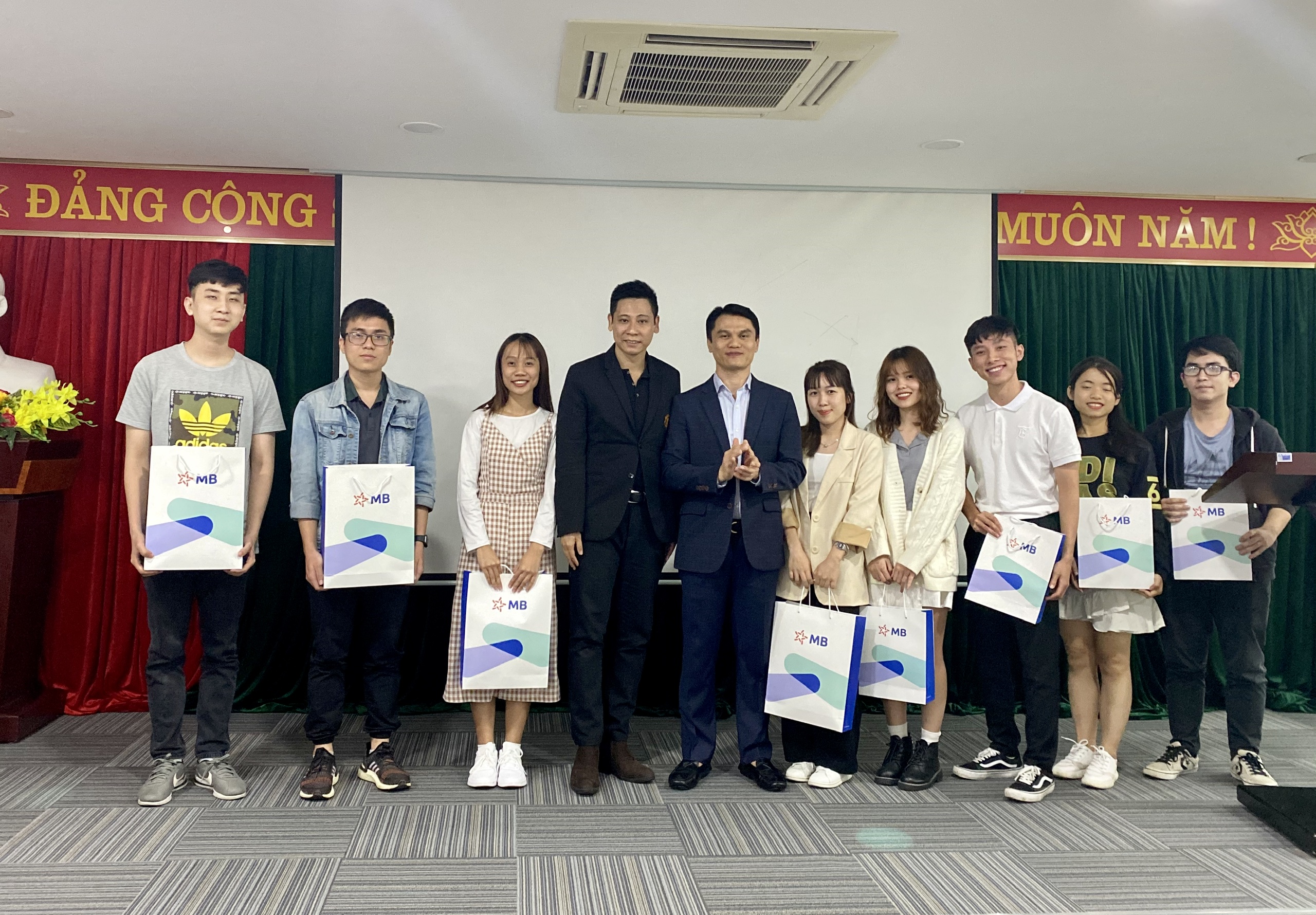 Ông Vũ Đức Giang – Giám đốc NH Quân đội (MB), chi nhánh Thanh Hóa tặng quà cho các bạn sinh viên