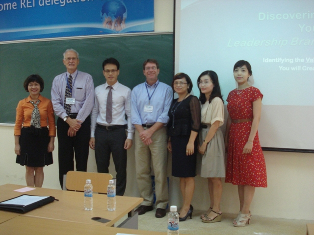 Trong 2 buổi làm việc, các chuyên gia REI đã trao đổi và chia sẻ kinh nghiệm trong việc phát triển bản thân cũng như về khả năng lãnh đạo cho sinh viên. Cụ thể với các chuyên đề như sau: Khám phá năng lực lãnh đạo của bản thân – Diễn giả Brian Teel; Vai trò của hiệu quả công việc đối với thành công – Diễn giả Brian Teel; Áp dụng phương pháp phân tích thất bại trong kinh doanh – Diễn giả Ron Smith; Biện pháp động viên phi tài chính – Diễn giả Ron Smith; Nhận thức với Thực tiễn – Diễn giả Don Colebourn; Tại sao doanh nghiệp thất bại – Diễn giả Del Goehner. Bên cạnh việc được học hỏi kinh nghiệm thực tế từ các chuyên gia qua những câu chuyện của chính bản thân họ, sinh viên ĐH KTQD còn được thể hiện những hiểu biết của mình qua các phần thuyết trình, hoạt động nhóm theo chủ đề để được lắng nghe những nhận xét, góp ý từ các chuyên gia đoàn REI.