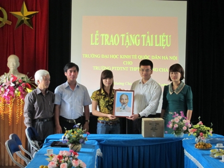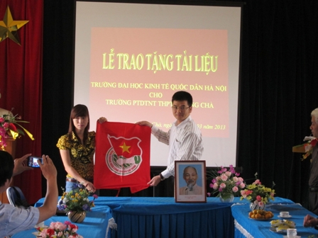 Nhận biết được khó khăn của các thầy cô giáo và các em học sinh trong học tập và giảng dạy, vượt qua chặng đường 550km đầy khó khăn, sáng ngày 30/03 Ban lãnh đạo Khoa Toán Kinh tế, LCĐ Khoa Toán Kinh tế, Đoàn thanh trường Đại học Kinh tế Quốc dân đã đến thăm và trao tặng cho trường phổ thông dân tộc nội trú và THPT Mường Chà – Tỉnh Điện Biên 20 bộ cờ đoàn, ảnh Bác Hồ và hơn 1000 cuốn sách giáo khoa, sách tham khảo bậc trung học phổ thông.