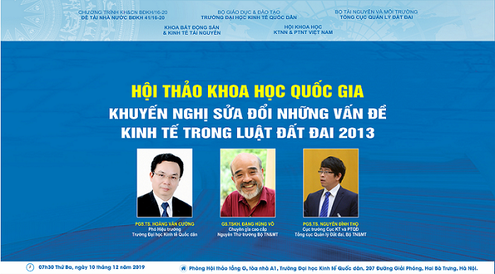 Kính mời quý Thầy cô giáo, các nhà khoa học, các chuyên gia, các em sinh viên tới dự Hội thảo Khoa học Quốc gia: “Khuyến nghị sửa đổi những vấn đề kinh tế trong Luật đất đai năm 2013”.