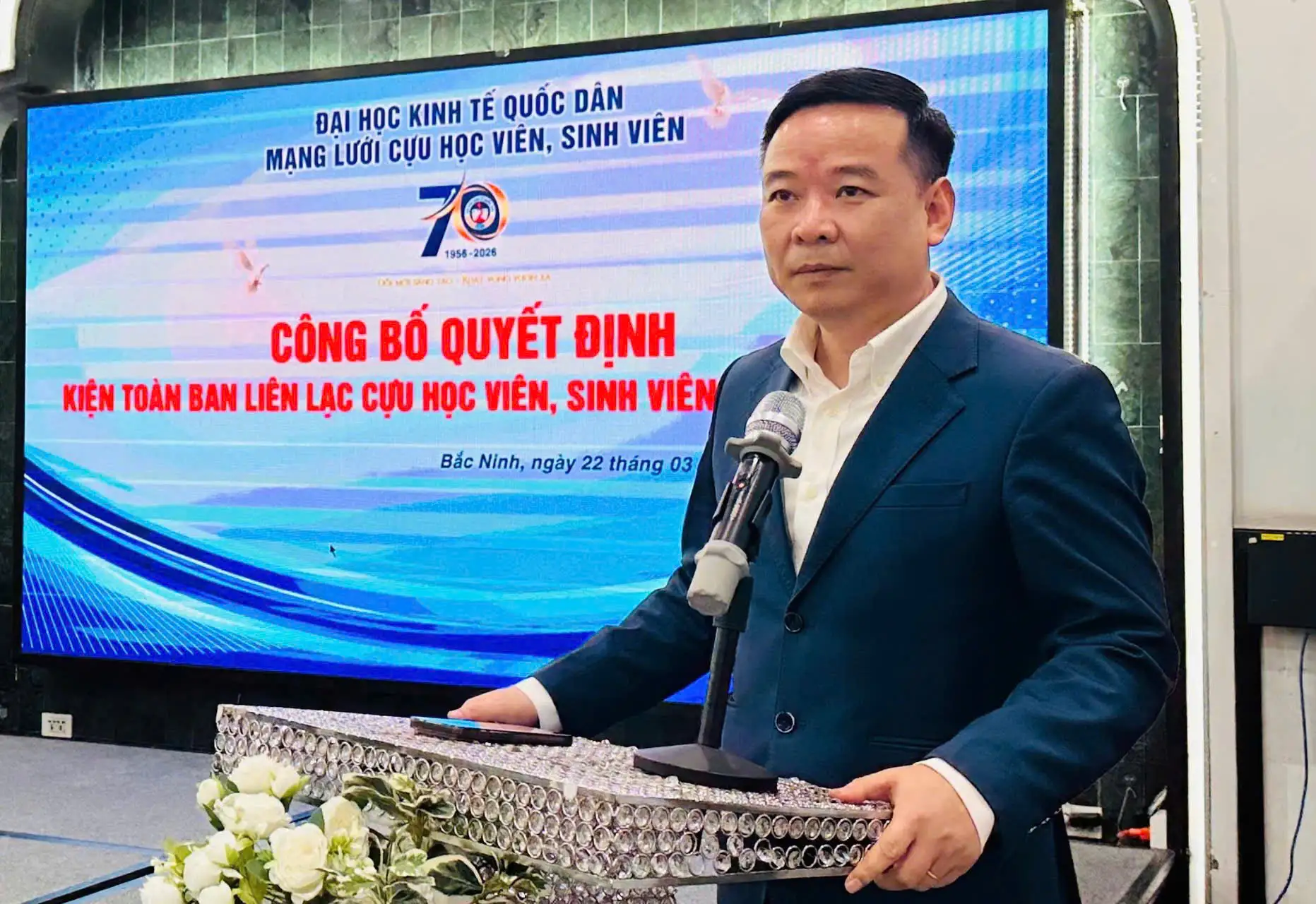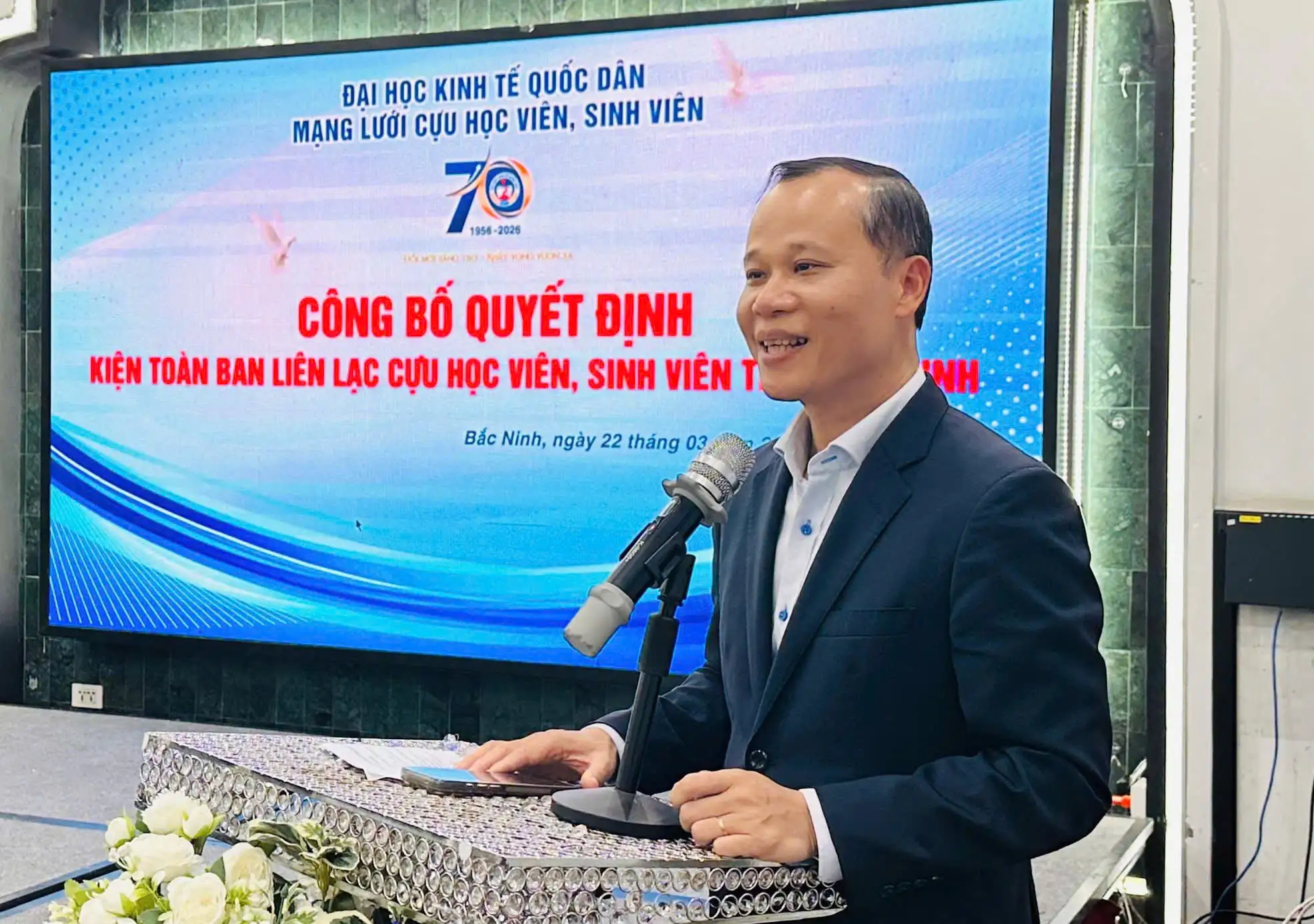 Ngày 22/3/2026, tại tỉnh Bắc Ninh, Đại học Kinh tế Quốc dân đã tổ chức chương trình gặp mặt và kiện toàn Ban liên lạc Cựu sinh viên, học viên tỉnh Bắc Ninh, thuộc Mạng lưới Cựu sinh viên, học viên của Nhà trường.