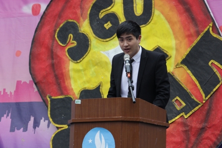 Tham dự buổi lễ có Thạc sỹ Trần Quý Long – Phó Bí thư Đoàn trường, Thạc sỹ Nguyễn Trần Hòa – Phó Giám đốc TTDV HTĐT. Mở đầu buổi meeting đồng chí Lâm Tùng – Chủ tịch Hội Sinh viên đã có bài phát biểu về nguồn gốc và ý nghĩa của ngày truyền thống học sinh sinh viên 9/1 và tuyên bố khai mạc hội chợ.