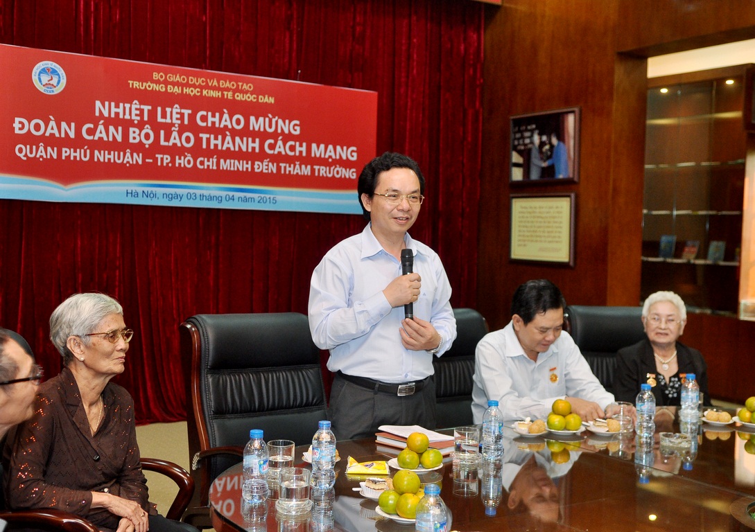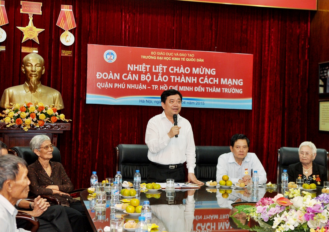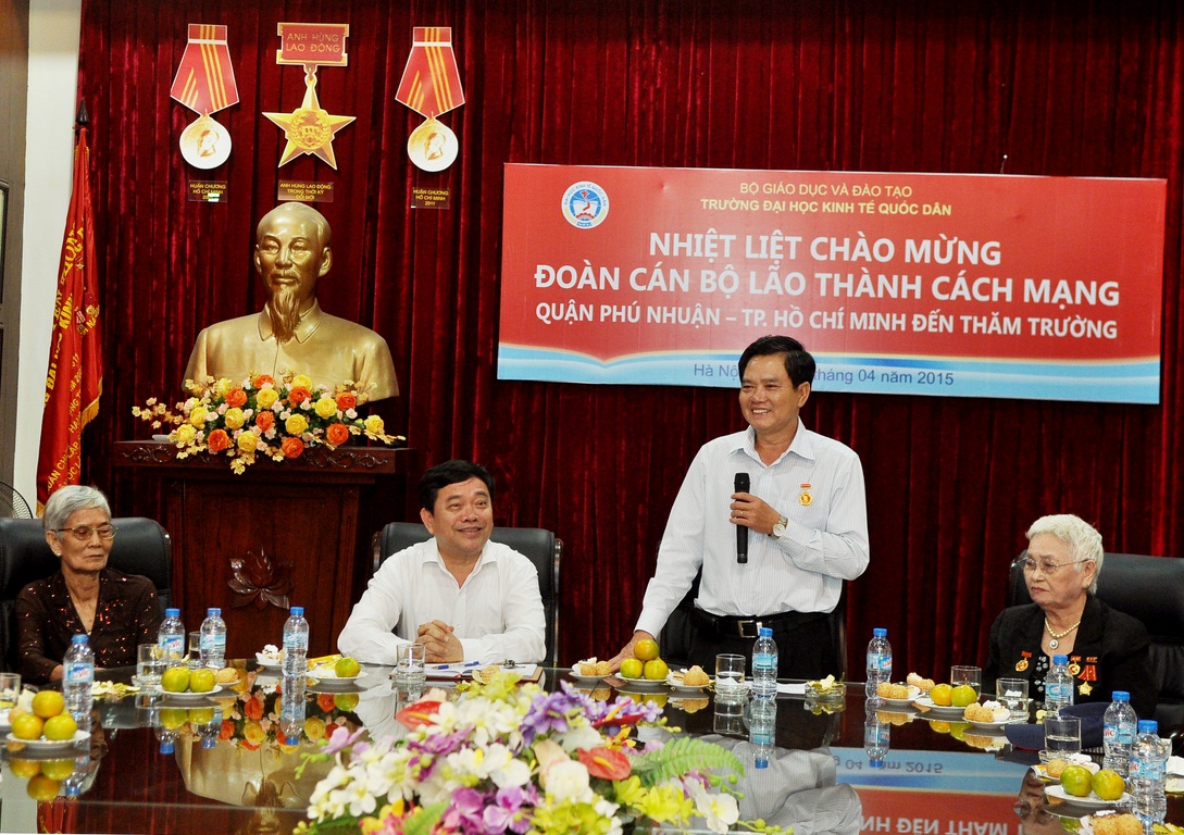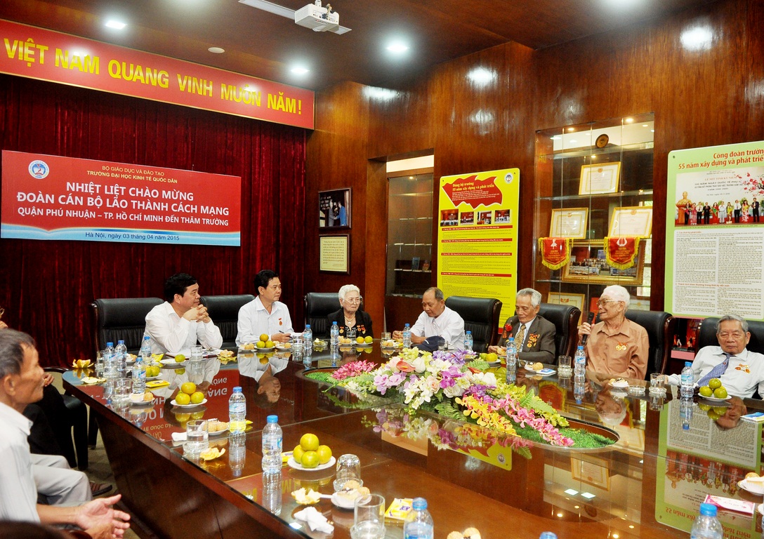 Nhân kỷ niệm 40 năm Giải phóng Miền Nam, thống nhất đất nước, đoàn cán bộ lão thành cách mạng Quận Phú Nhuận – TP.Hồ Chí Minh đã ra viếng Lăng Bác và tham quan một số di tích lịch sử, danh lam thắng cảnh Hà Nội; đặc biệt trong đoàn cán bộ lão thành cách mạng có một số cán bộ là những cựu cán bộ, sinh viên trường. Chiều ngày 03 tháng 4 năm 2015, trường ĐHKTQD đã vinh dự được đón đoàn cán bộ lão thành cách mạng Quận Phú Nhuận đến thăm trường.