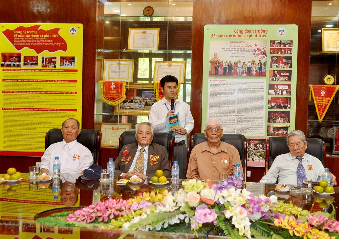 Phát biểu tại buổi gặp mặt, thay mặt tập thể sư phạm nhà trường, GS.TS. Trần Thọ Đạt – Bí thư Đảng ủy, Hiệu trưởng bày tỏ niềm vui, cảm động khi được đón các bác cán bộ lão thành cách mạng tới thăm trường. Giáo sư Hiệu trưởng đã giới thiệu khái quát về trường, về những thành tựu mà tập thể sư phạm nhà trường đã đạt được trong sự nghiệp bảo vệ và xây dựng đất nước và khẳng định rằng những thành tựu và cống hiến đó có sự đóng góp to lớn công sức của các cán bộ lão thành cách mạng, của các thế hệ cán bộ, sinh viên nhà trường qua các thế hệ. Giáo sư gửi lời kính chúc sức khỏe tới các cán bộ lão thành cách mạng và mong rằng sẽ được đón các bác về thăm lại trường vào dịp kỷ niệm 60 năm thành lập trường.