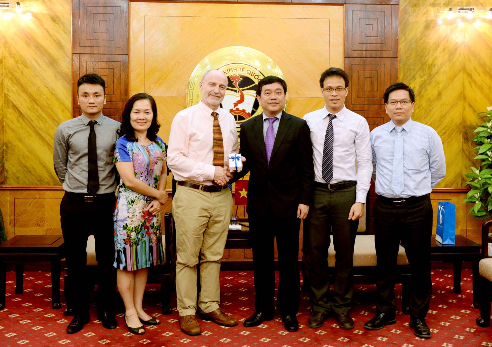 Chiều ngày 12/05, Trường ĐH Kinh tế Quốc dân đã có buổi tiếp và làm việc với PGS Patrick O'Leary – đại diện lãnh đạo trường St.Ambrose – Hoa Kỳ. Tham gia buổi làm việc, về phía ĐH Kinh tế Quốc dân có: GS.TS. Trần Thọ Đạt – Bí thư Đảng ủy, Hiệu trưởng; TS. Nguyễn Thành Hiếu – Trưởng Khoa Quản trị kinh doanh; TS. Đào Thành Tùng – Trưởng phòng Hợp tác Quốc tế; TS.Phan Thủy Chi – Phó Viện trưởng Viện Đào tạo quốc tế; TS. Hà Sơn Tùng – Trưởng BM QTDN Khoa Quản trị Kinh doanh.
