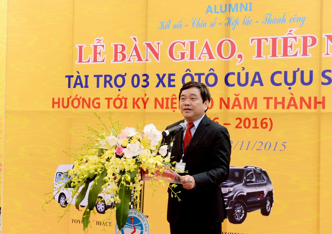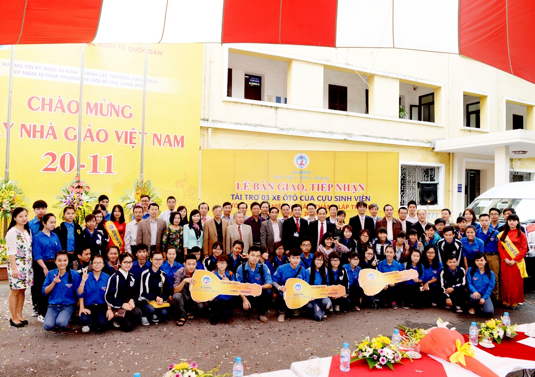 Hướng tới kỷ niệm 60 năm thành lập trường Đại học Kinh tế Quốc dân (1956 – 2016) và Lễ hiến chương các nhà giáo – 20/11, sáng 13 tháng 11 năm 2015, trường Đại học Kinh tế Quốc dân đã long trọng tổ chức Lễ tiếp nhận 03 xe ô tô của cựu sinh viên nhà trường trao tặng.