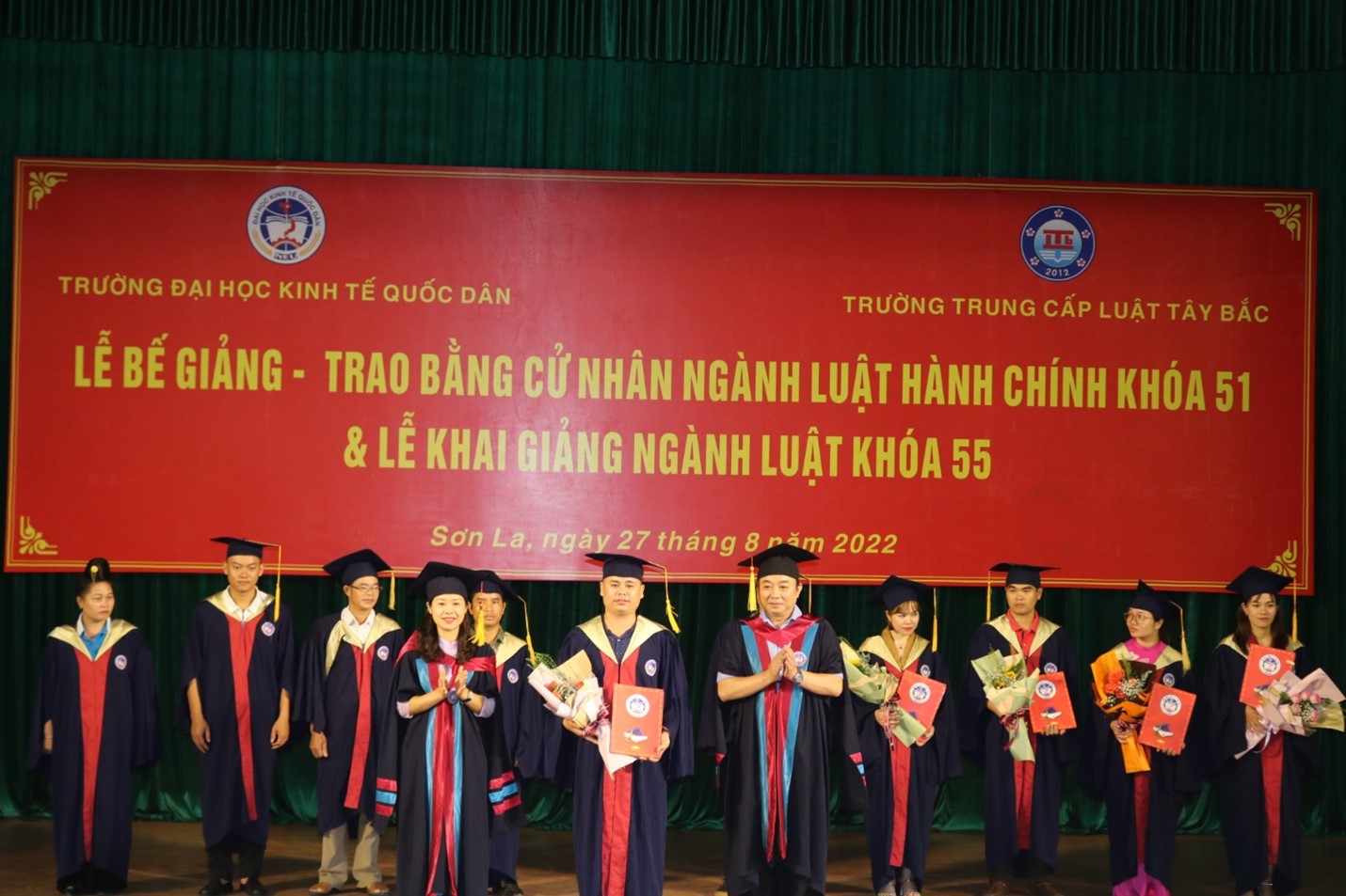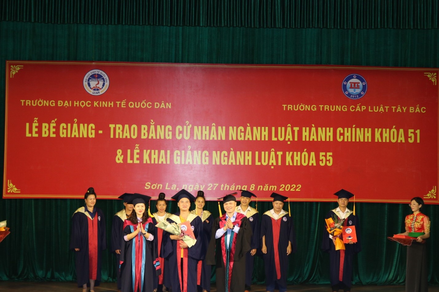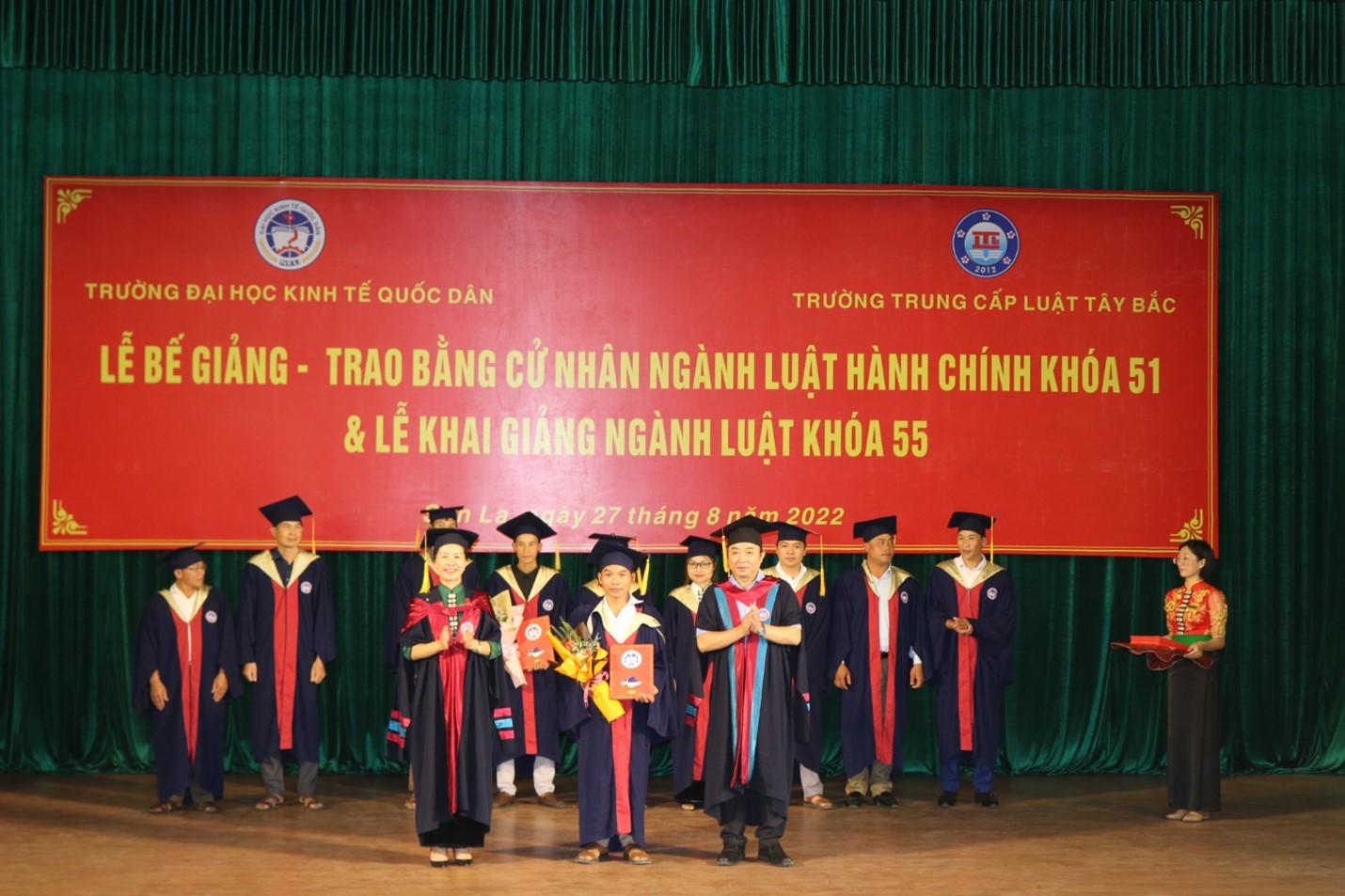 Sáng ngày 27 tháng 8 năm 2022, Trường Đại học Kinh tế Quốc dân phối hợp với trường Trung cấp Luật Tây Bắc đã tổ chức Lễ Bế giảng, trao bằng cử nhân ngành Luật Hành chính khóa 51 và Lễ Khai giảng ngành Luật khóa 55.