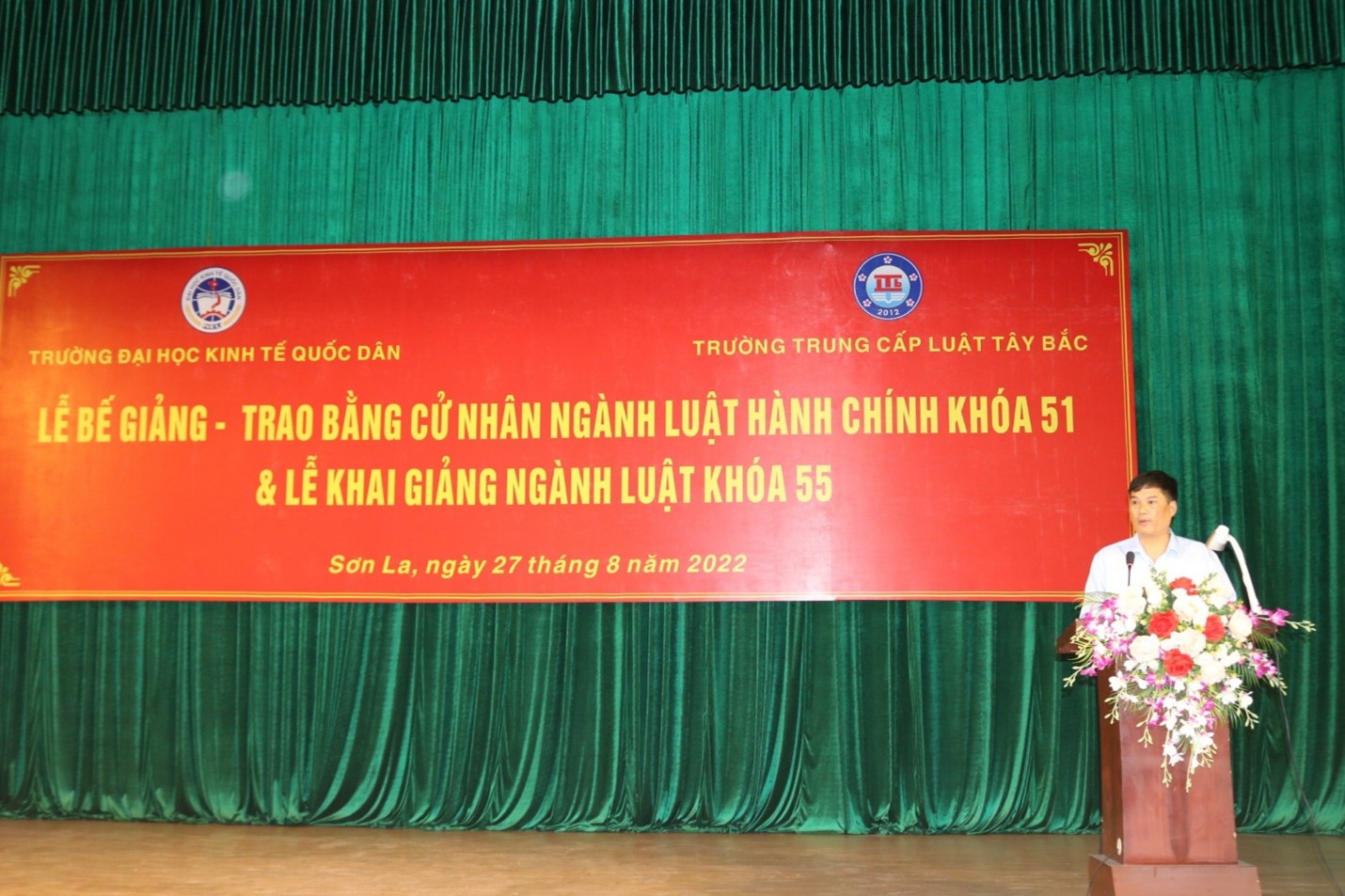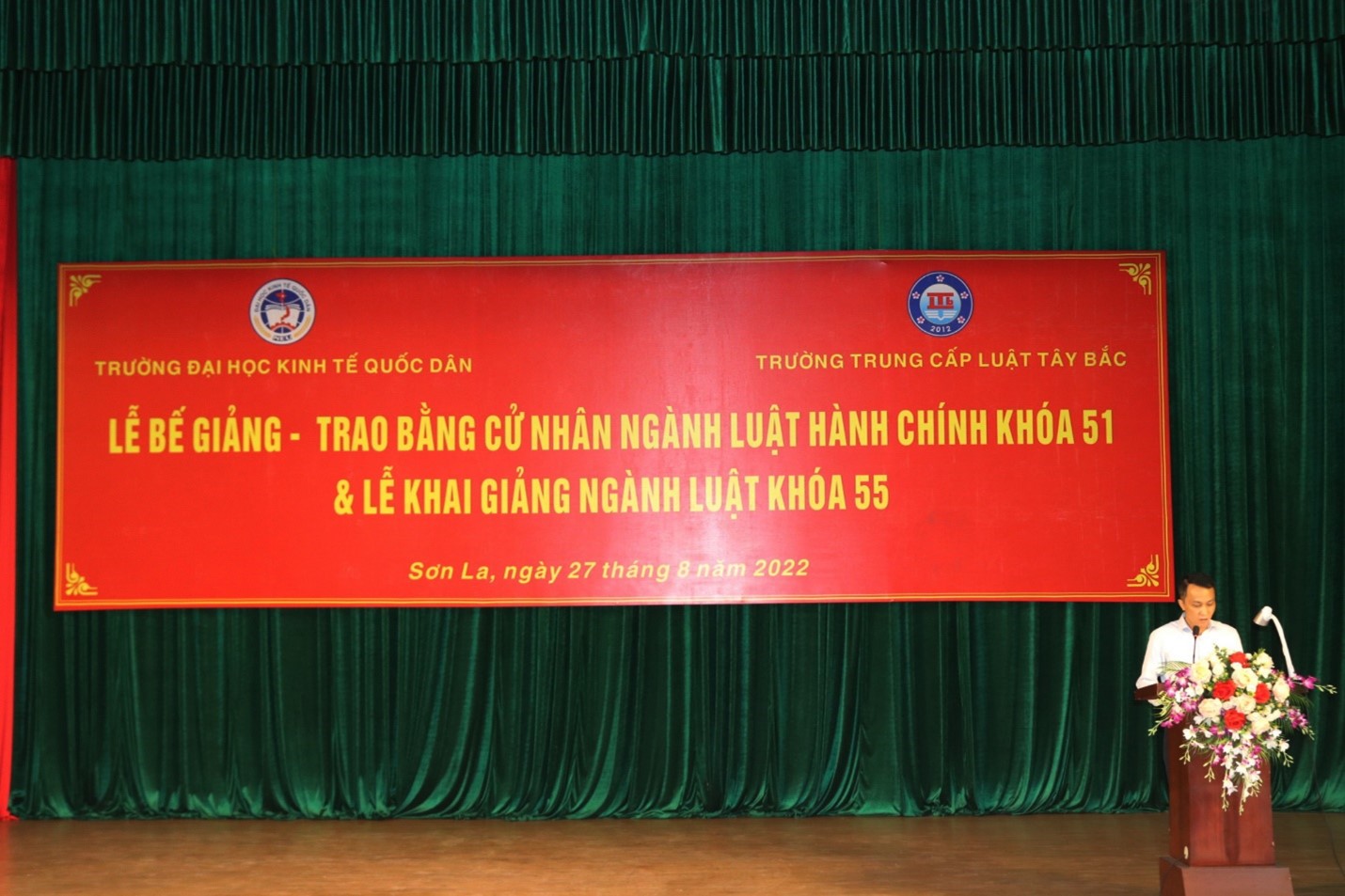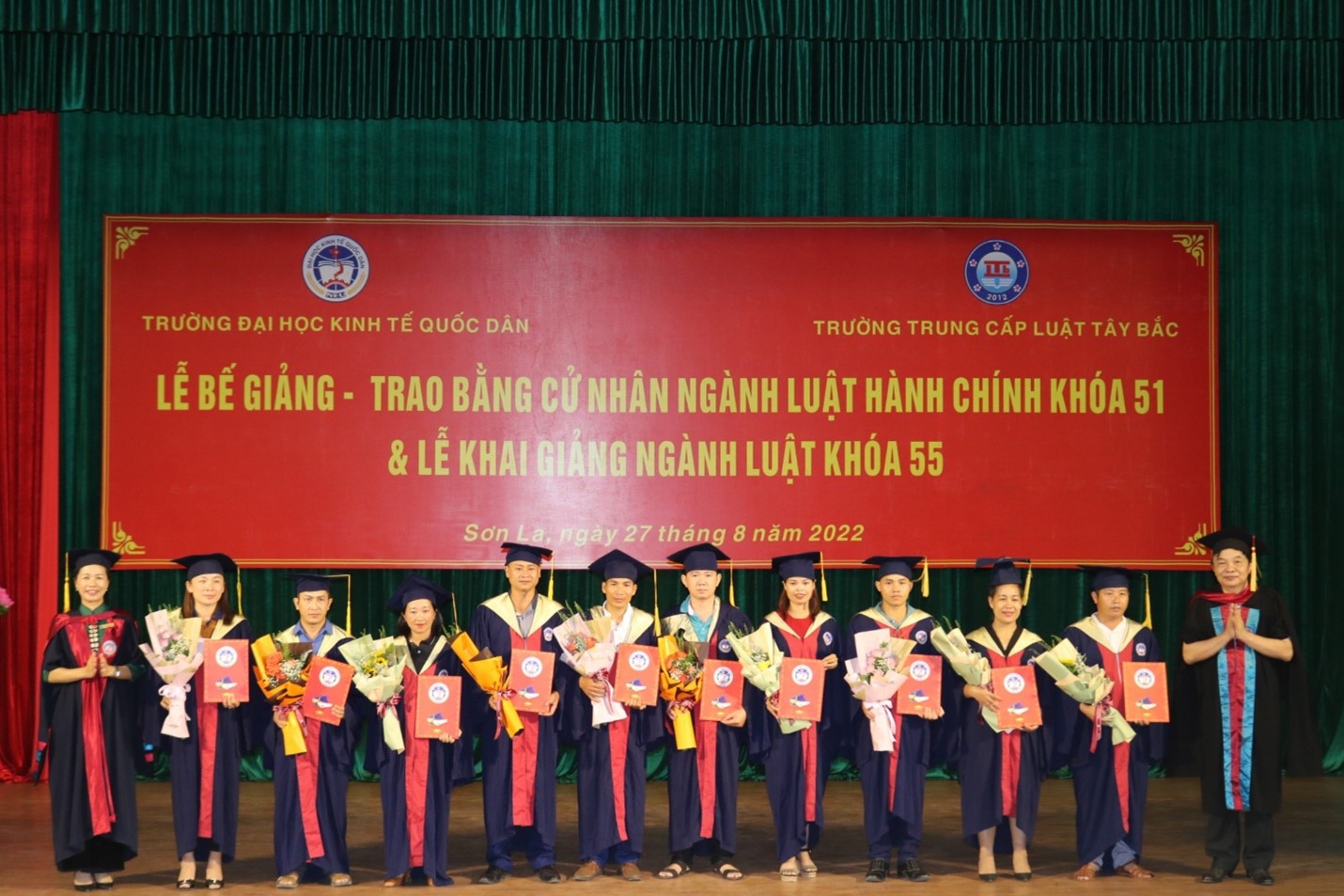Sáng ngày 27 tháng 8 năm 2022, Trường Đại học Kinh tế Quốc dân phối hợp với trường Trung cấp Luật Tây Bắc đã tổ chức Lễ Bế giảng, trao bằng cử nhân ngành Luật Hành chính khóa 51 và Lễ Khai giảng ngành Luật khóa 55.