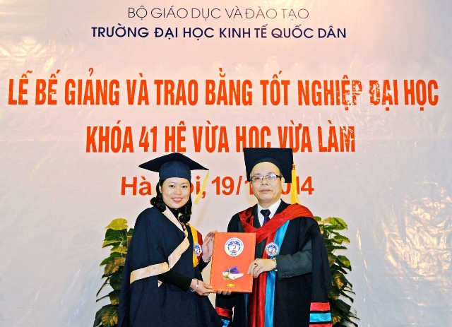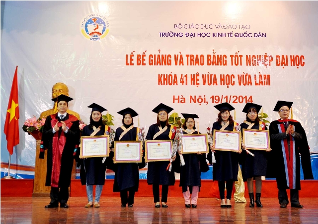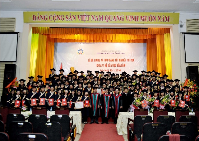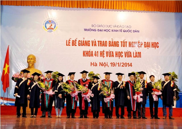 Sáng 19 tháng 01 năm 2014, tại Nhà Văn hoá trường Đại học Kinh tế Quốc dân đã long trọng tổ chức Lễ bế giảng và trao bằng tốt nghiệp cho 416 sinh viên đại học hệ vừa làm vừa học khóa 41. Tới dự buổi lễ có PGS.TS. Phạm Mạnh Hùng – Thứ trưởng Bộ GD & ĐT kiêm Bí thư Đảng uỷ – Hiệu trưởng cùng các đồng chí trong Ban giám hiệu; đại diện lãnh đạo các Viện, Trung tâm, các phòng ban trong trường, các thầy cô giáo, các cơ quan phát thanh truyền hình, gia đình, bạn bè của các tân cử nhân.