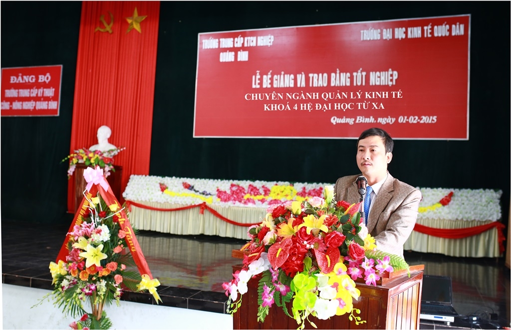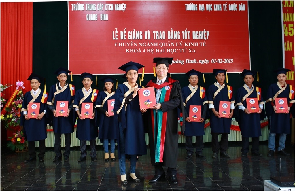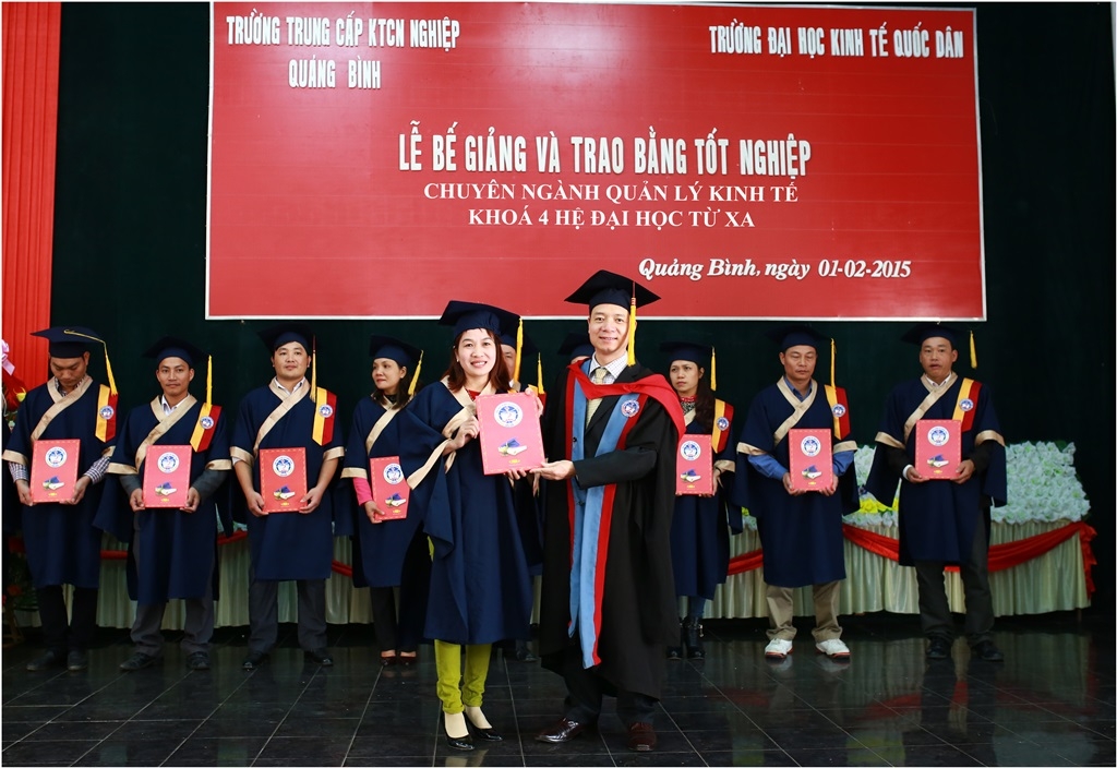 Sáng  01  tháng  02  năm 2015, tại trường Trung cấp Công nông nghiệp Quảng Bình, Trung tâm đào tạo từ xa trường Đại học KTQD đã phối hợp với trường Trung cấp Công nông nghiệp Quảng Bình tổ chức Lễ Bế giảng và trao bằng tốt nghiệp cho 59 sinh viên hệ Đại học từ xa khóa 4 học tập tại Trường Trung cấp Công nông nghiệp Quảng Bình.