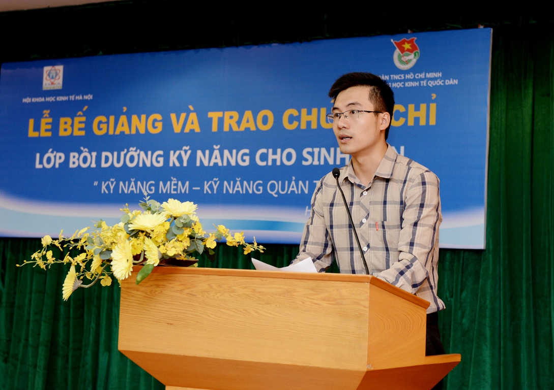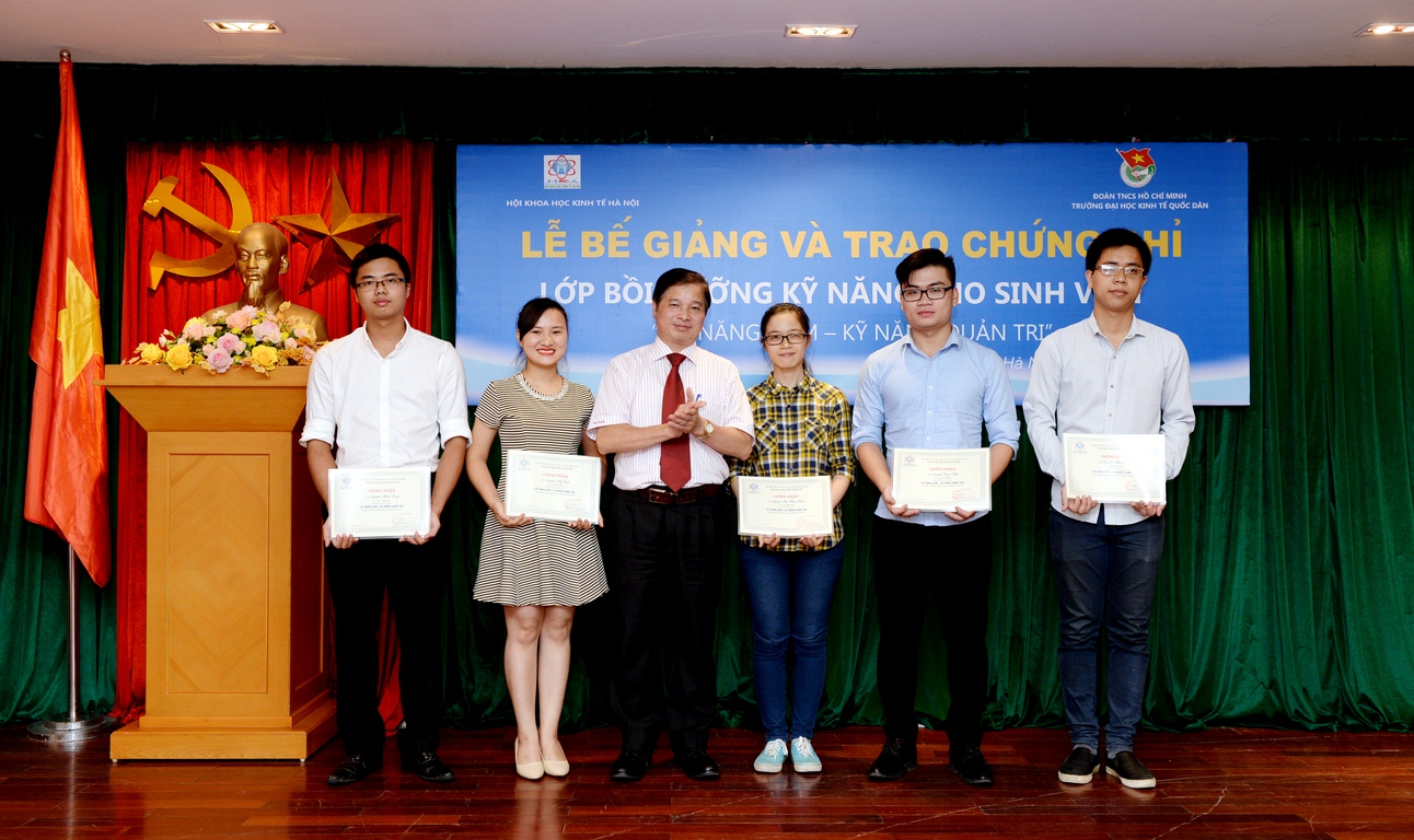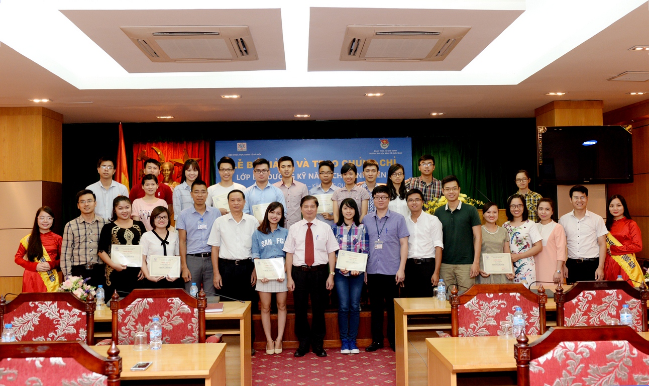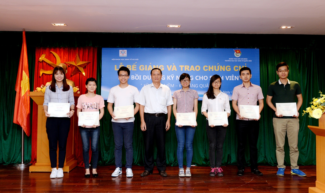 Ngày 7/7/2016, tại G2N10, Đoàn Thanh niên trường Đại học Kinh tế Quốc dân phối hợp cùng Hội khoa học kinh tế Hà Nội tổ chức Lễ bế giảng và trao chứng chỉ lớp bồi dưỡng kĩ năng cho sinh viên “Kỹ năng mềm – kỹ năng quản trị”.