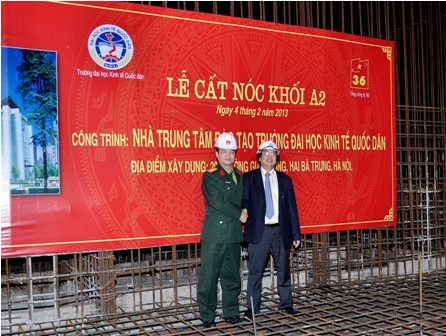 Lễ cất nóc, hoàn thành xây dựng phần thô khối nhà A2 – Công trình tòa nhà Trung tâm đào tạo trường Đại học KTQD