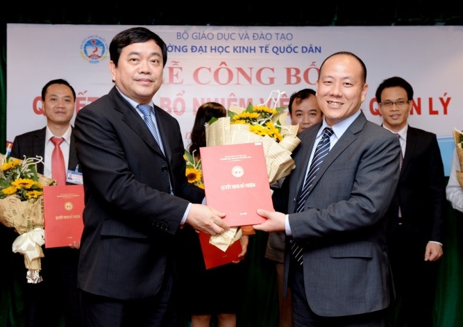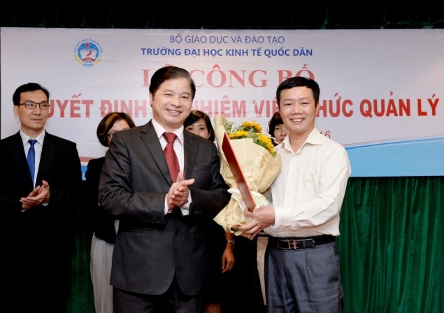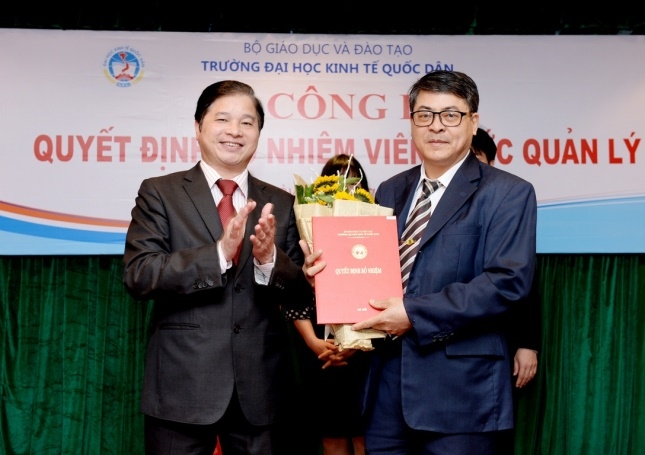 GS.TS. Trần Thọ Đạt trao quyết định bổ nhiệm và tặng hoa chúc mừng TS Đồng Xuân Đảm – Viện trưởng Viện Đào tạo quốc tế