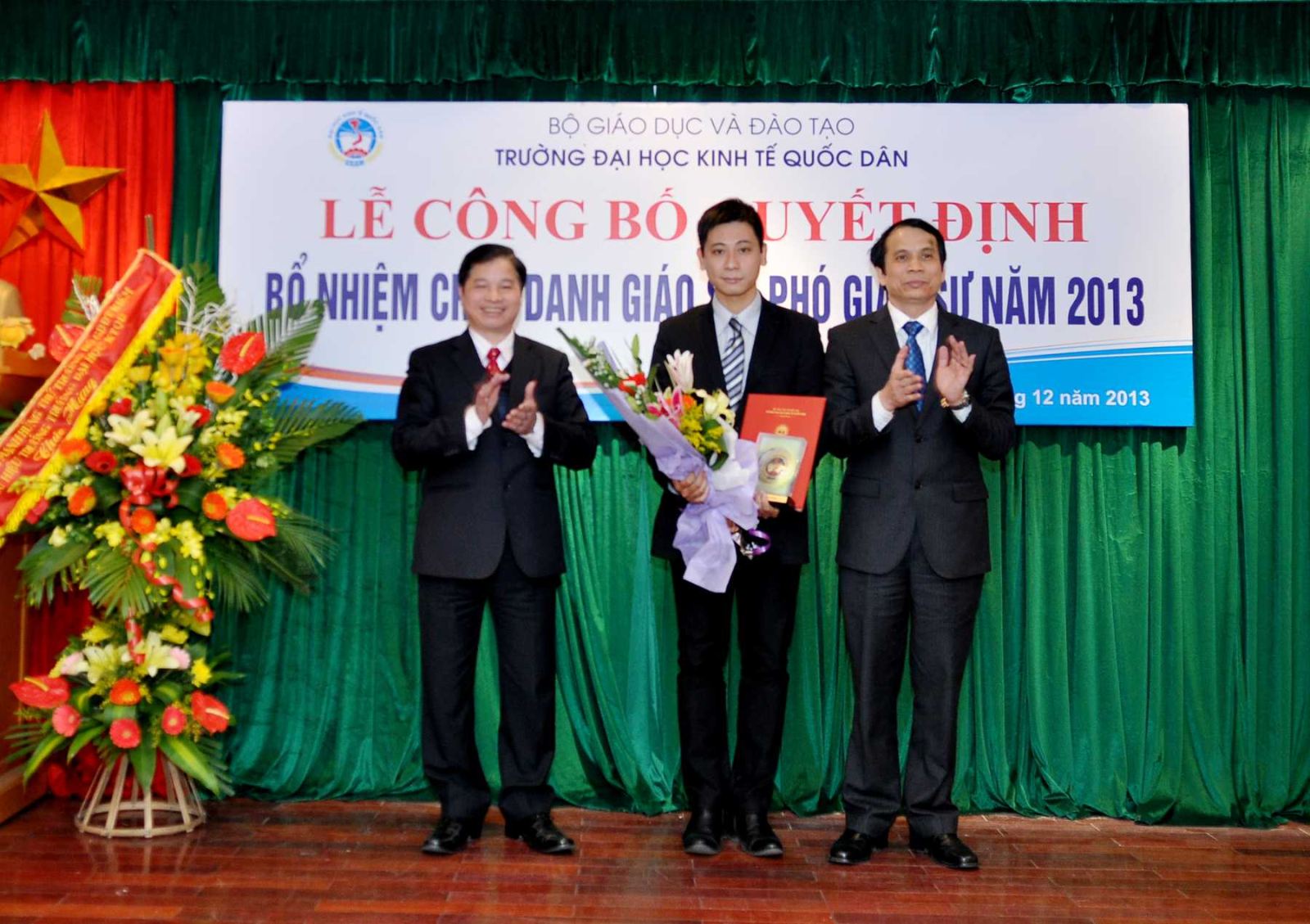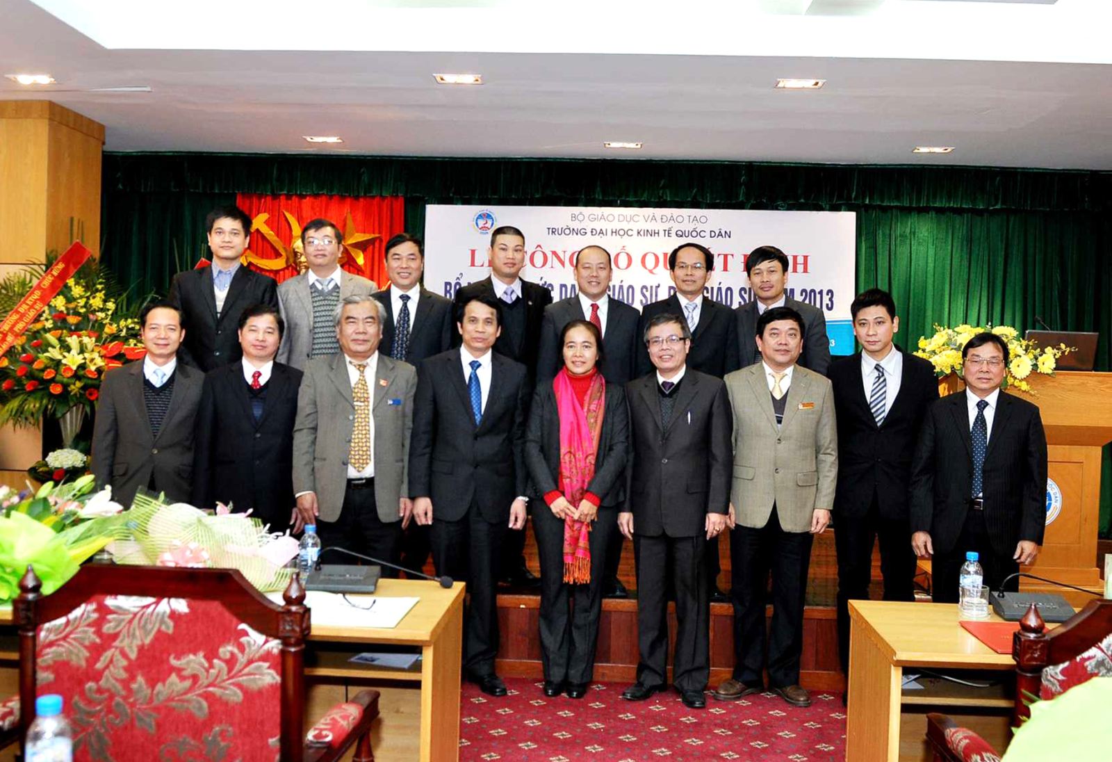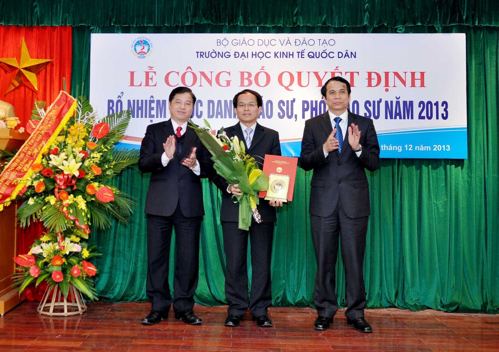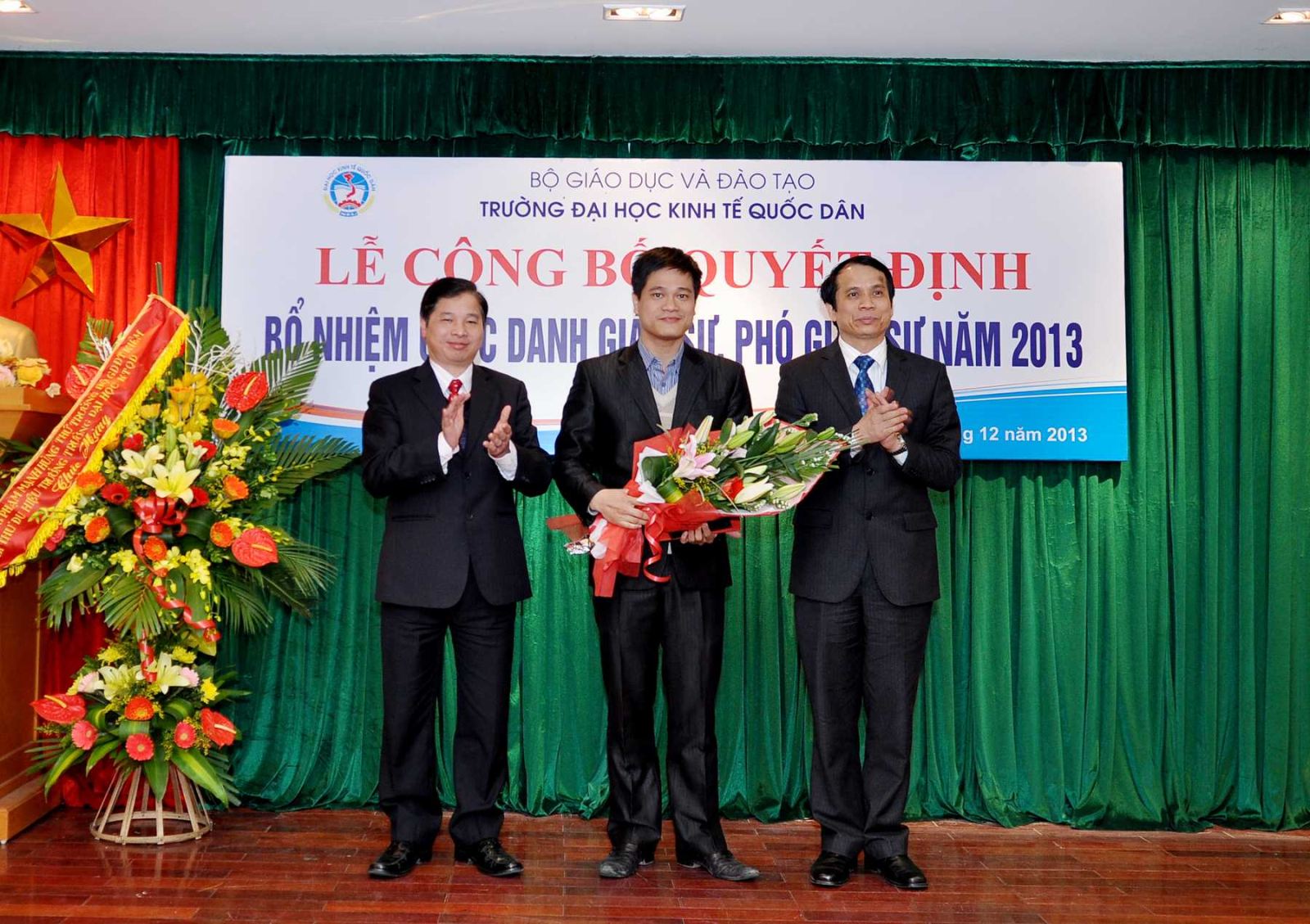 Chiều ngày 20/12/2013, tại Phòng họp G2- Nhà 10, Trường Đại học Kinh tế Quốc dân đã tổ chức Lễ công bố Quyết định bổ nhiệm Giáo sư và Phó Giáo sư năm 2013. Đến dự buổi lễ có PGS.TS Phạm Mạnh Hùng – Thứ trưởng Bộ GD và ĐT, kiêm Bí thư Đảng ủy, Hiệu trưởng; GS.TS Phan Công Nghĩa- Phó Hiệu trưởng, Chủ tịch Hội đồng Khoa học vàĐào tạo Trường, Chủ tịch Hội đồng chức danh cơ sở ; GS.TS Trần Thọ Đạt – Phó Hiệu trưởng, GS.TS Phạm Quang Trung, Phó Hiệu trưởng; GS.TS Nguyễn Viết Lâm; Đông đảo các đồng chí lãnh đạo các tổ chức chính trị xã hội, các đơn vị trực thuộc; các cán bộ, giáo viên đơn vị có Nhà giáo được bổ nhiệm chức danh GS, PGS năm 2013 cùng 12 Nhà giáo và gia đình, người thân đến tham dự buỏi lễ.