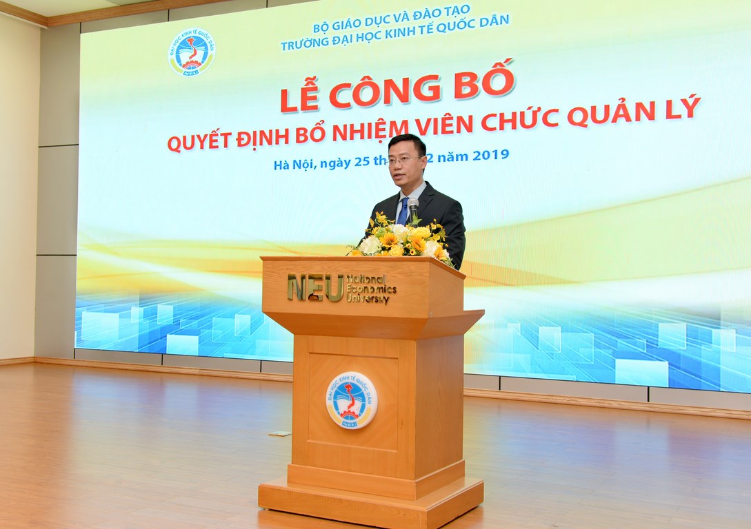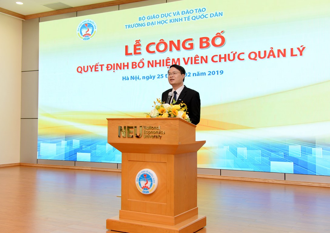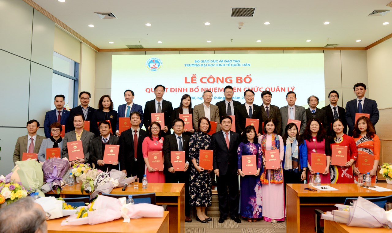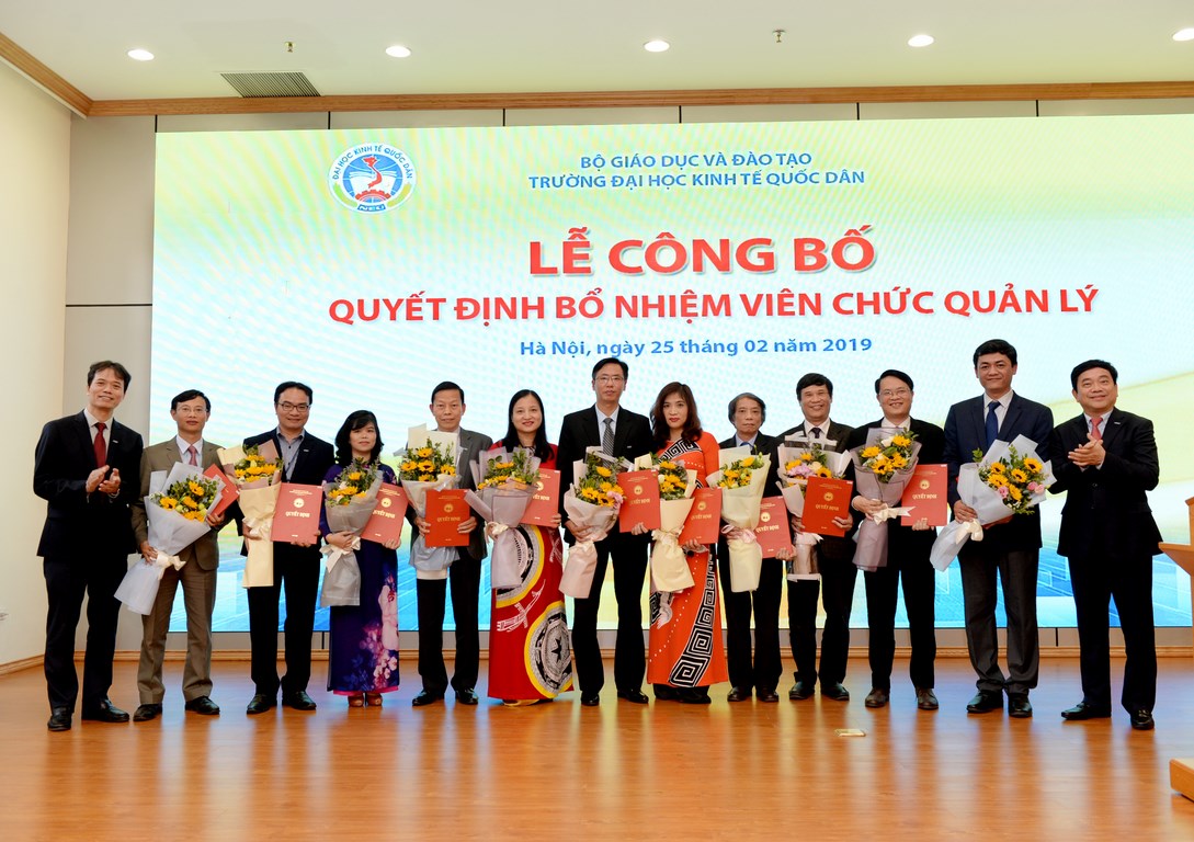 Tiếp tục thực hiện công tác kiệntoàn về bộ máy viên chức quản lý của Nhà trường và thực hiện Kế hoạch số 1842/KH-ĐHKTQD ngày 21/12/2018 về việc bổ nhiệm, bổ nhiệm lại, kéo dài thời gian giữ chức vụ, luân chuyển, cho thôi giữ chức vụ và miễn nhiệm viên chức quản lý của Trường Đại học Kinh tế Quốc dân nhiệm kỳ 2019 – 2024. Chiều ngày 25/02/2019, Trường Đại học Kinh tế Quốc dân đã tổ chức Lễ công bố quyết định bổ nhiệm cán bộ quản lý cho 27 viên chức quản lý được bổ nhiệm lần đầu, bổ nhiệm lại và các viên chức được kéo dài thời gian giữ chức vụ và tri ân các viên chức thôi giữ chức vụ quản lý.
