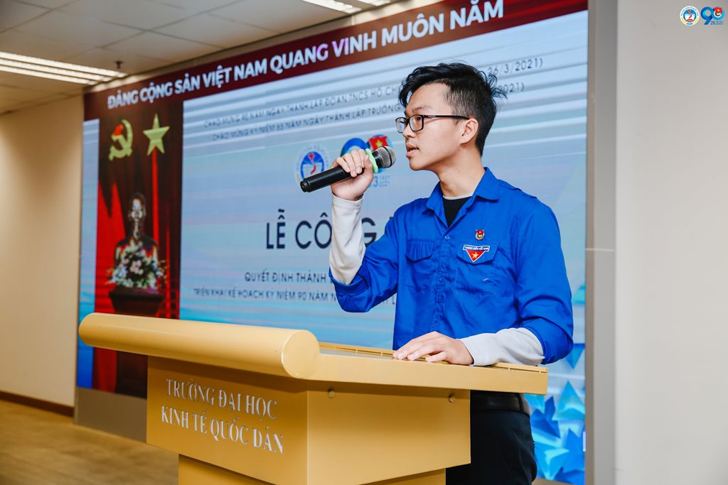 Đồng chí Lê Trí Nhân – Bí thư Chi đoàn Quản lý công và chính sách bằng tiếng anh Khoá 6 (E-PMP6) thay mặt cho các đồng chí cán bộ Đoàn nhận quyết định và phát biểu nhận nhiệm vụ