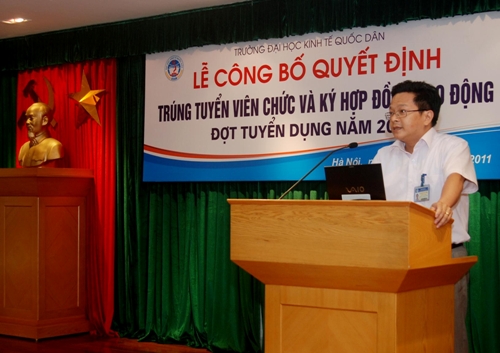 Thực hiện kếhoạch tuyển dụng năm 2011, Hội đồng tuyển dụng trường ĐHKTQD đã tiến hành các bước công việc theo đúng quy trình tuyển dụng của trường, của Nhà nước quy định, đảm bảo công khai, minh bạch, công bằng. Sau thời gian tiến hành các bước của quy trình tuyển dụng, Hội đồng tuyển dụng trường đã xét và công nhận 35 ứng viên đã trúng tuyển đợt tuyển dụng đợt tháng 8 năm 2011; và ngày 26/8/2011, tại GII.Nhà 10, Phòng tổ chức cán bộ đã tổ chức Lễ công bố Quyết định trúng tuyển và ký hợp đồng lao động với các ứng viên đã trúng tuyển.