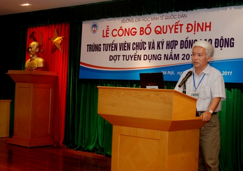 Thực hiện kếhoạch tuyển dụng năm 2011, Hội đồng tuyển dụng trường ĐHKTQD đã tiến hành các bước công việc theo đúng quy trình tuyển dụng của trường, của Nhà nước quy định, đảm bảo công khai, minh bạch, công bằng. Sau thời gian tiến hành các bước của quy trình tuyển dụng, Hội đồng tuyển dụng trường đã xét và công nhận 35 ứng viên đã trúng tuyển đợt tuyển dụng đợt tháng 8 năm 2011; và ngày 26/8/2011, tại GII.Nhà 10, Phòng tổ chức cán bộ đã tổ chức Lễ công bố Quyết định trúng tuyển và ký hợp đồng lao động với các ứng viên đã trúng tuyển.