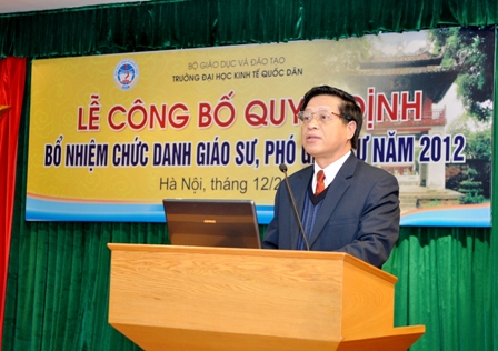 Chiều 26/12/2012, tại phòng hợp G2- Nhà 10, trường Đại học Kinh tế Quốc dân đã long trọng tổ chức lễ công bố bổ nhiệm các tân Giáo sư, Phó giáo sư được phong năm 2012.