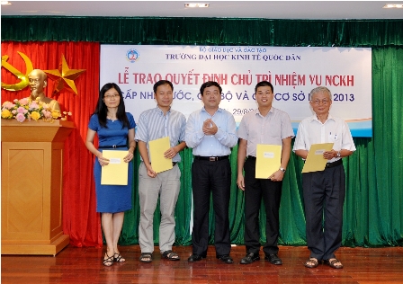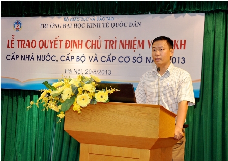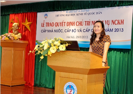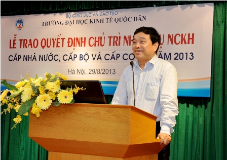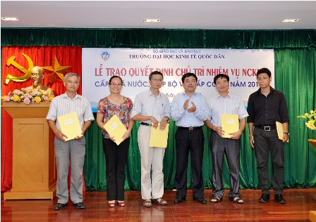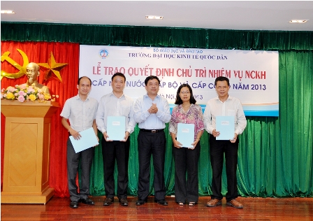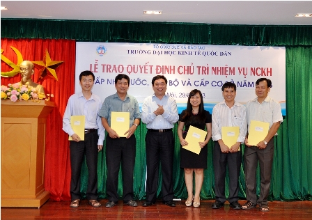 Chiều ngày 28 tháng 8 năm 2013, tại phòng họp A gác 2 Nhà 10, Trường ĐH Kinh tế quốc dân đã tiến hành Lễ trao quyết định Chủ trì nhiệm vụ nghiên cứu khoa học các cấp năm 2013 cho các nhà khoa học là giảng viên, viên chức của Nhà trường. Đến dự buổi lễ có GS.TS. Trần Thọ Đạt, Phó Hiệu trưởng, đại diện lãnh đạo phòng chức năng và toàn thể viên chức phòng Quản lý khoa học.