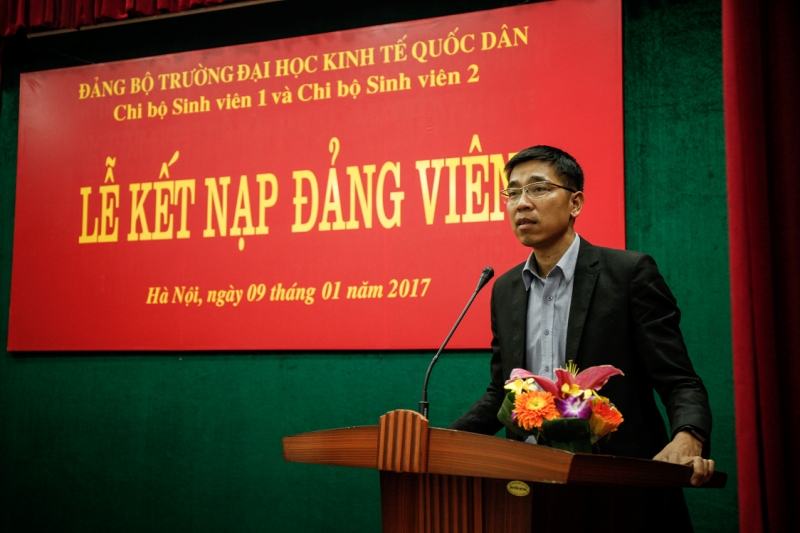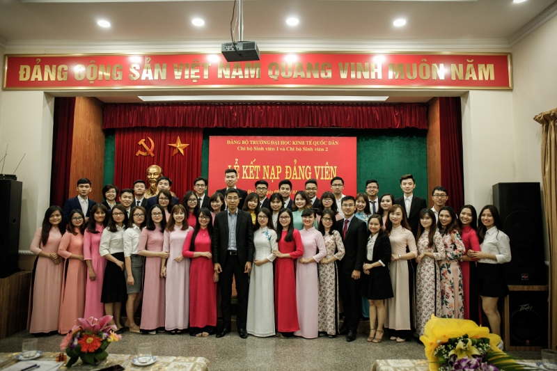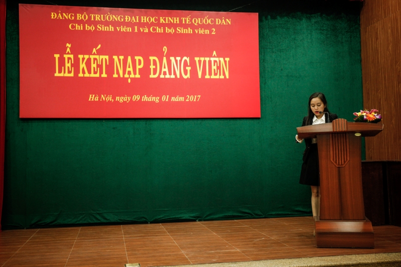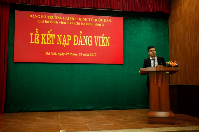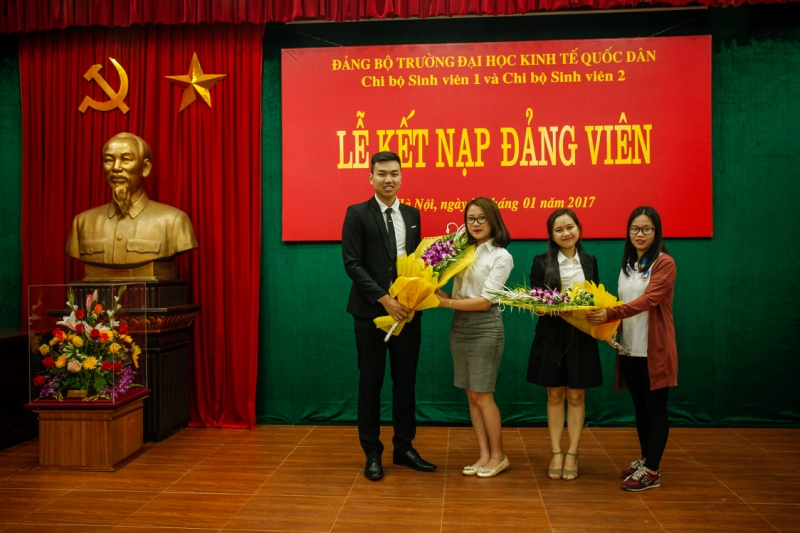 Chiều ngày 09 tháng 01 năm 2017, Nhân dịp kỷ niệm67 năm Ngày truyền thống Học sinh – Sinh viên Việt Nam 09/01/1950 – 09/01/2017, kỷ niệm 87 năm ngày thành lập Đảng Cộng sản Việt Nam (03/02/1930-03/02/2017); Thực hiện quyết định của Đảng ủy Trường ĐH Kinh tế Quốc dân, Chi bộ Sinh viên 1 và 2 long trọng tổ chức buổi lễ kết nạp Đảng viên mới cho 35 quần chúng ưu tú tại khuôn viên khu di tích Phủ Chủ tịch. Đến dự buổi lễ có TS. Bùi Trung Hải – Đảng ủy viên, Bí thư Đoàn Thanh niên, ThS Nguyễn Nhất Linh – Phó bí thư Đoàn trường cùng Đại diện chi ủy và đảng viên hai Chi bộ cùng 35 quần chúng ưu tú là đoàn viên sinh viên xuất sắc của Nhà trường được kết nạp Đảng.