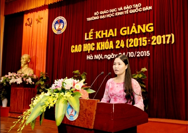 Học viên Hoàng Thị Thu Hà đại diện cho các tân học viên cao học phát biểu bày tỏ quyết tâm: “Con đường học tập và nghiên cứu của chúng ta sẽ còn rất nhiều khó khăn. Trước mắt chúng ta là 2 năm học với rất nhiều thách thức. Tuy nhiên tôi tin chắc rằng, với sự quyết tâm và nỗ lực, tất cả chúng ta sẽ hoàn thành suất sắc khóa học này”. Tân học viên cũng hi vọng sẽ luôn nhận được sự quan tâm, chỉ đạo từ Ban lãnh đạo Nhà trường, Viện Đào tạo sau đại học và các phòng, ban cũng như toàn thể các thầy cô giáo trong suốt hai năm học tập và nghiên cứu tại trường.