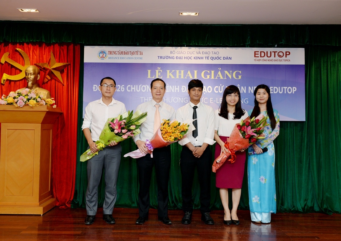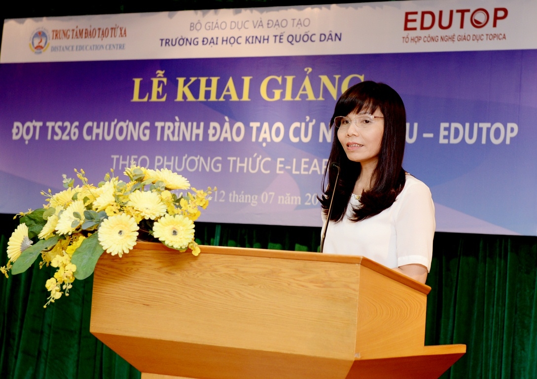 Sáng ngày 12 tháng 7 năm 2015, tại hội trường G2 nhà 10, Trường Đại học Kinh tế Quốc dân đã tổ chức lễ khai giảng chương trình đào tạo cử nhân NEU – EDUTOP TS26 theo phương thức E – LEARNING. Đến dự và chia vui với thầy trò Trung tâm đào tạo từ xa có đại diên lãnh đạo công ty EDUTOP64, đại diện lãnh đạo các đơn vị Phòng, Ban, Khoa, Viện, trung tâm và các tổ chức chính trị xã hội trường Đại học KTQD cùng cán bộ chuyên viên Trung tâm đào tạo từ xa, các thầy cô giáo tham gia giảng dạy chương trình và các tân sinh viên trúng tuyển vào chương trình. PGS.TS. Trần Thị Vân Hoa, Phó hiệu trưởng nhà trường đã chủ trì và phát biểu chúc mừng tân sinh viên và thầy trò Trung tâm đào tạo từ xa.