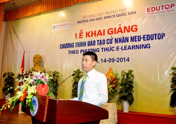 Vừa qua, tại Hội trường A, Trường Đại học Kinh tế Quốc dân đã tổ chức lễ khai giảng đợt 7 năm 2014 (TS19) chương trình đào tạo cử nhân NEU – EDUTOP theo phương thức E – LEARNING. Đến dự buổi lễ, về phía các đại biểu ngoài trường có: Bà Nguyễn Thị Phương Thảo – Phó Tổng GĐ Cty EDUTOP, Về phía giảng viên Doanh nghiệp có: Ths. Đặng Thị Bắc – Phó tổng Giám đốc Cty CP thiết bị công nghiệp Đại Đồng; Ths. Trần Anh Vương – Phó Chủ tịch hội đồng quản trị công ty thép Bắc Việt, Phó chủ tịch hội Doanh nghiệp trẻ Hà Nội. Về phía trường Đại học Kinh tế Quốc dân có: PGS.TS. Lê Trung Thành – Giám đốc Trung tâm ĐTTX; ThS.Bùi Kiên Trung – Phó Giám đốc Trung tâm ĐTTX; TS.Vũ Trọng Nghĩa – Phó trưởng phòng CTCT &QLSV; PGS.TS.Phạm Quang – Viện trưởng Viện Kế toán kiểm toán; TS. Nguyễn Trung Tuấn – Viện trưởng Viện Công nghệ thông tin Kinh tế; ThS. Tô Thị Thiên Hương – Phó trưởng khoa Bảo Hiểm; ThS. Lê Đức Hoàng – Chánh Văn Phòng Viện Ngân Hàng – Tài Chính; TS.Nguyễn Thị Hoàn – Trưởng Bộ môn Đường lối cách mạng của ĐCS VN – Khoa LLCT; TS.Nguyễn Thị Huế – Trưởng Bộ môn Pháp luật cơ sở – Khoa Luật; ThS. Phạm Thảo – Viện Công nghệ Thông tin kinh tế cùng đại diện các Viện, Khoa, Phòng, các thầy cô giáo tham gia giảng dạy, các tân sinh viên của khóa học.