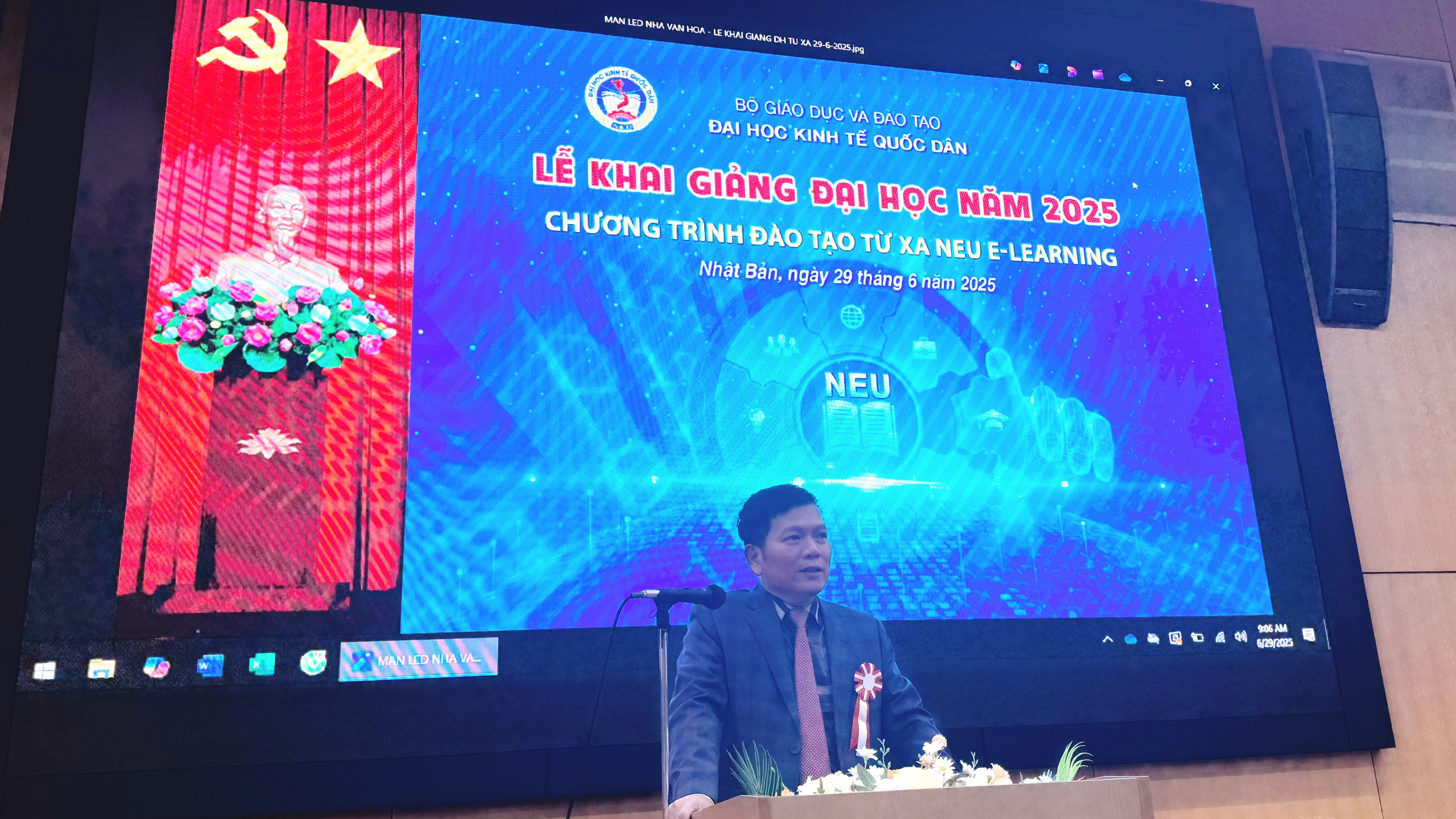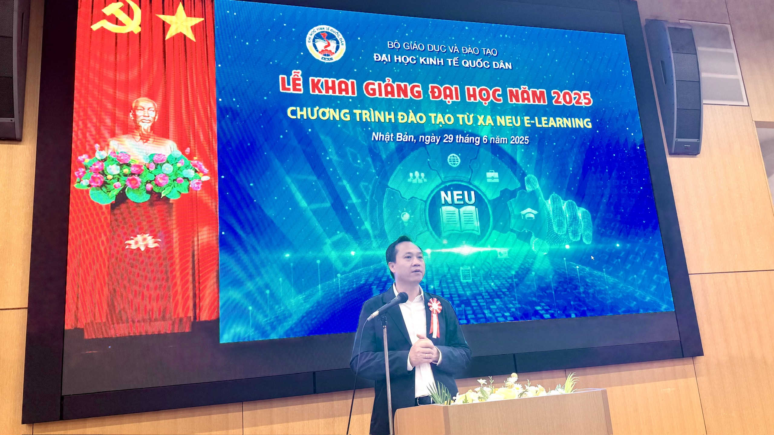 Phát biểu tại Lễ Khai giảng Chương trình đào tạo từ xa NEU E-learning khoá 2 tại Nhật Bản, GS.TS Nguyễn Thành Hiếu – Phó Giám đốc Đại học Kinh tế Quốc dân gửi lời chào mừng nồng nhiệt tới các tân sinh viên và nhấn mạnh ý nghĩa đặc biệt của sự kiện lần này trong hành trình mở rộng giáo dục trực tuyến ra khu vực quốc tế.