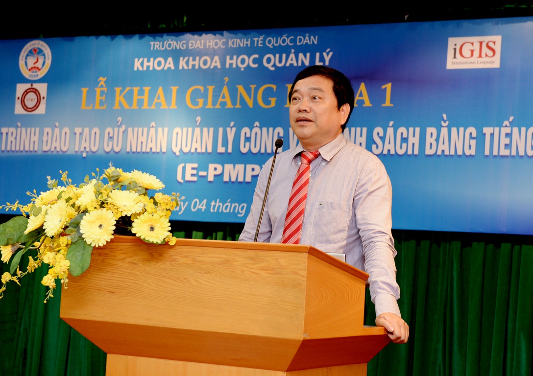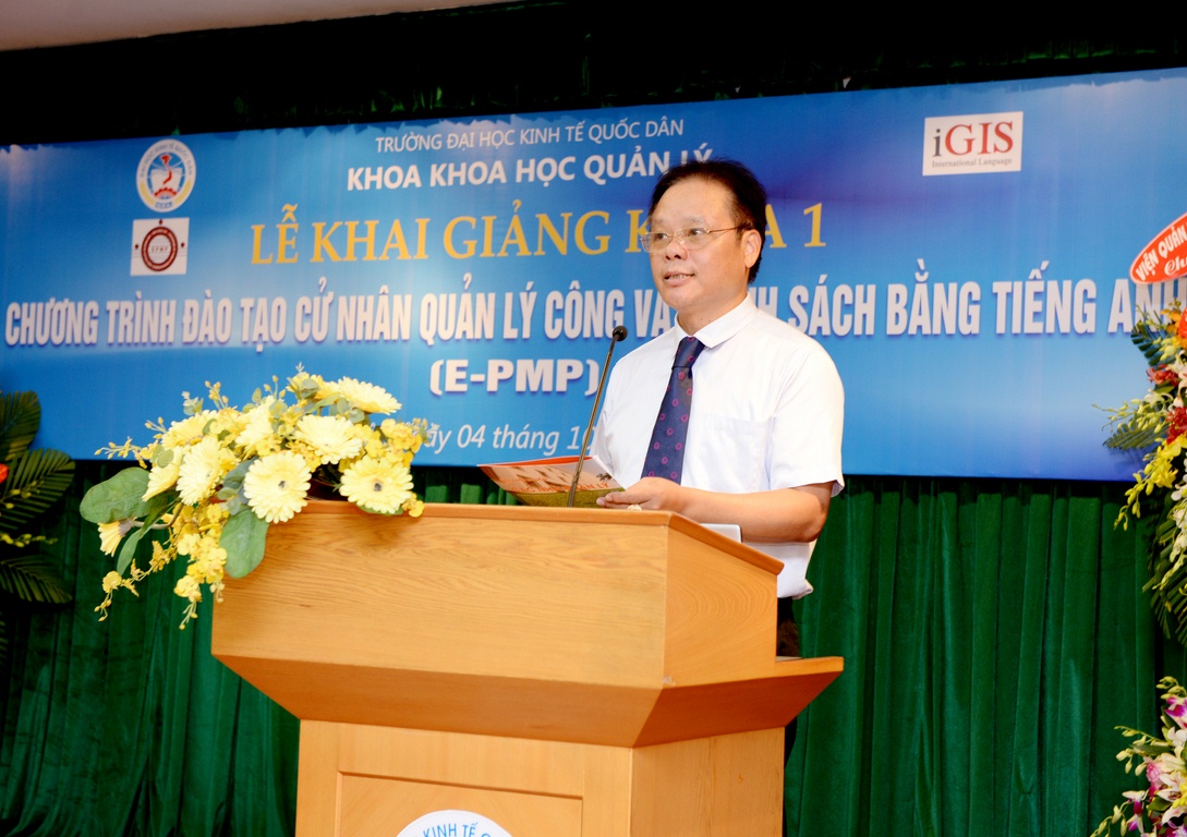 Dưới sự chỉ đạo của Đảng ủy, Ban Giám hiệu, Hội đồng KH&ĐT, cùng với sự ủng hộ của các phòng, ban, các đơn vị trong trường, Chương trình Quản lý công và Chính sách bằng tiếng Anh (E-PMP) đã ra đời, với sự cố gắng và nỗ lực trong công tác tuyển sinh của Nhà trường và của Khoa Khoa học quản lý. Ngày 4/10/2015, Chương trình đã long trọng diễn ra lễ khai giảng với 18 sinh viên đầu tiên. Đến tham dự buổi lễ có: TS. Nguyễn Mạnh Hùng – Phó Vụ trưởng Vụ TH, Ban KTTW; GS.TS Trần Thọ Đạt – Hiệu trưởng, Bí thư Đảng ủy; PGS.TS Trần Thị Vân Hoa – Phó Hiệu trưởng; GS.TS Phan Công Nghĩa – Chủ tịch Hội đồng KH&ĐT Trường cùng các đồng chí lãnh đạo các tổ chức chính trị, đơn vị trong trường, các thầy cô khoa Khoa học quản lý, buổi lễ còn có sự tham dự của các bậc phụ huynh các em sinh viên.