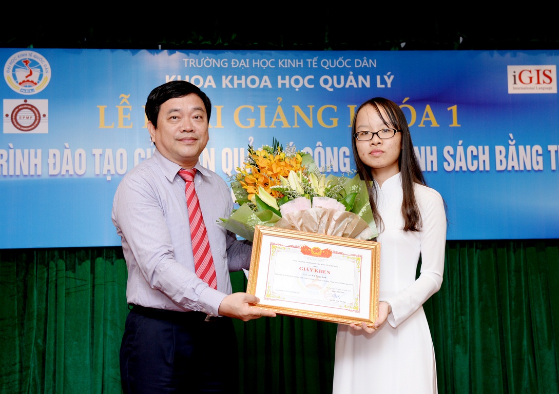 GS.TS Trần Thọ Đạt trao tặng giấy khen cho sinh viên Vũ Ngọc Anh