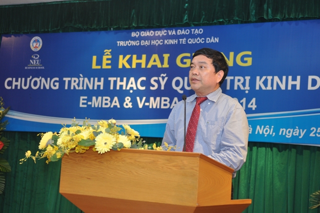 Phát biểu khai mạc buổi lễ, GS.TS.Trần Thọ Đạt – Hiệu trưởng nhà trường đã chúc mừng 162 tân học viên cao học và đánh giá cao thành công và sự phù hợp của chương trình EMBA và VMBA trong quá trình hội nhập và đáp ứng tiêu chuẩn quốc tế. GS.TS. Trần Thọ Đạt cũng đã khẳng định: “Sự phát triển và thành công của Chương trình trong thời gian qua chính là sự thừa nhận của xã hội đối với xu thế đổi mới về công nghệ đào tạo và phát triển các chương trình đào tạo theo chuẩn quốc tế ở Việt Nam. Đó cũng chính là sự thừa nhận của xã hội Việt Nam về chất lượng đào tạo của Viện Quản trị Kinh doanh trường Đại học Kinh tế Quốc dân, qua đó góp phần đưa tên tuổi của Đại học Kinh tế Quốc dân không chỉ nâng tầm, uy tín trong nước mà còn vượt xa hơn nữa trên tầm quốc tế” và chúc các tân học viên cao học “nỗ lực khám phá tri thức, sáng tạo để có thể cập nhật tốt nhất các tri thức và kinh nghiệm mới về Quản trị Kinh doanh, trở thành những nhà kinh doanh giỏi về nghiệp vụ chuyên môn, tốt về tư cách đạo đức, phát triển về sự nghiệp, đóng góp giá trị cho xã hội qua đó làm rạng rỡ danh tiếng của Đại học Kinh tế Quốc dân nói chung và Viện Quản trị Kinh doanh nói riêng”.