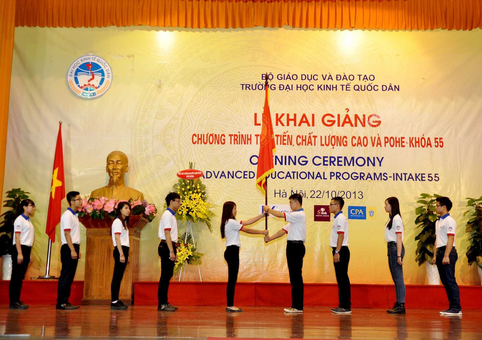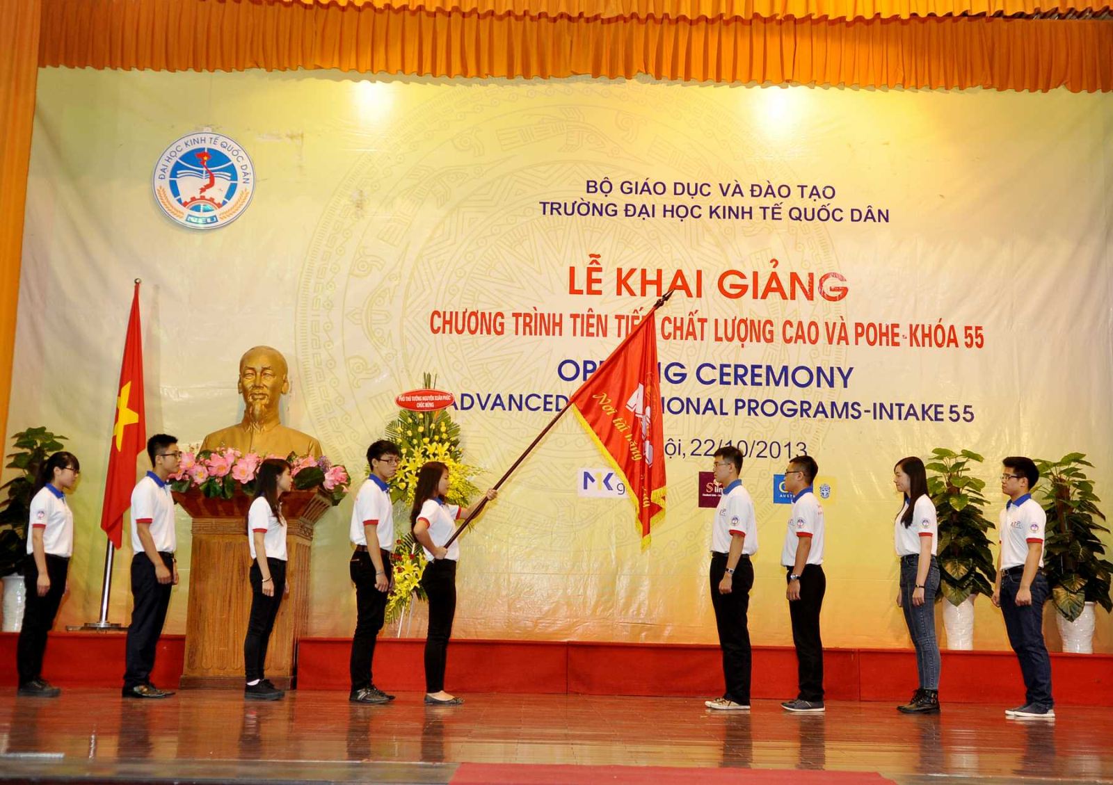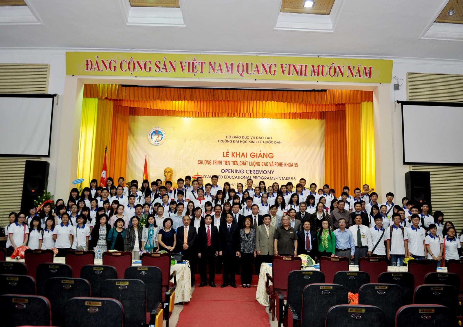 Trong không khí thi đua hướng về kỷ niệm ngày Nhà giáo Việt Nam, Sáng ngày 22/10/2013, tại Hội trường A, trường Đại học Kinh tế Quốc dân đã long trọng tổ chức Lễ khai giảng năm học mới cho hơn 650 sinh viên Chương trình Tiên tiến, chất lượng cao và POHE khóa 55.