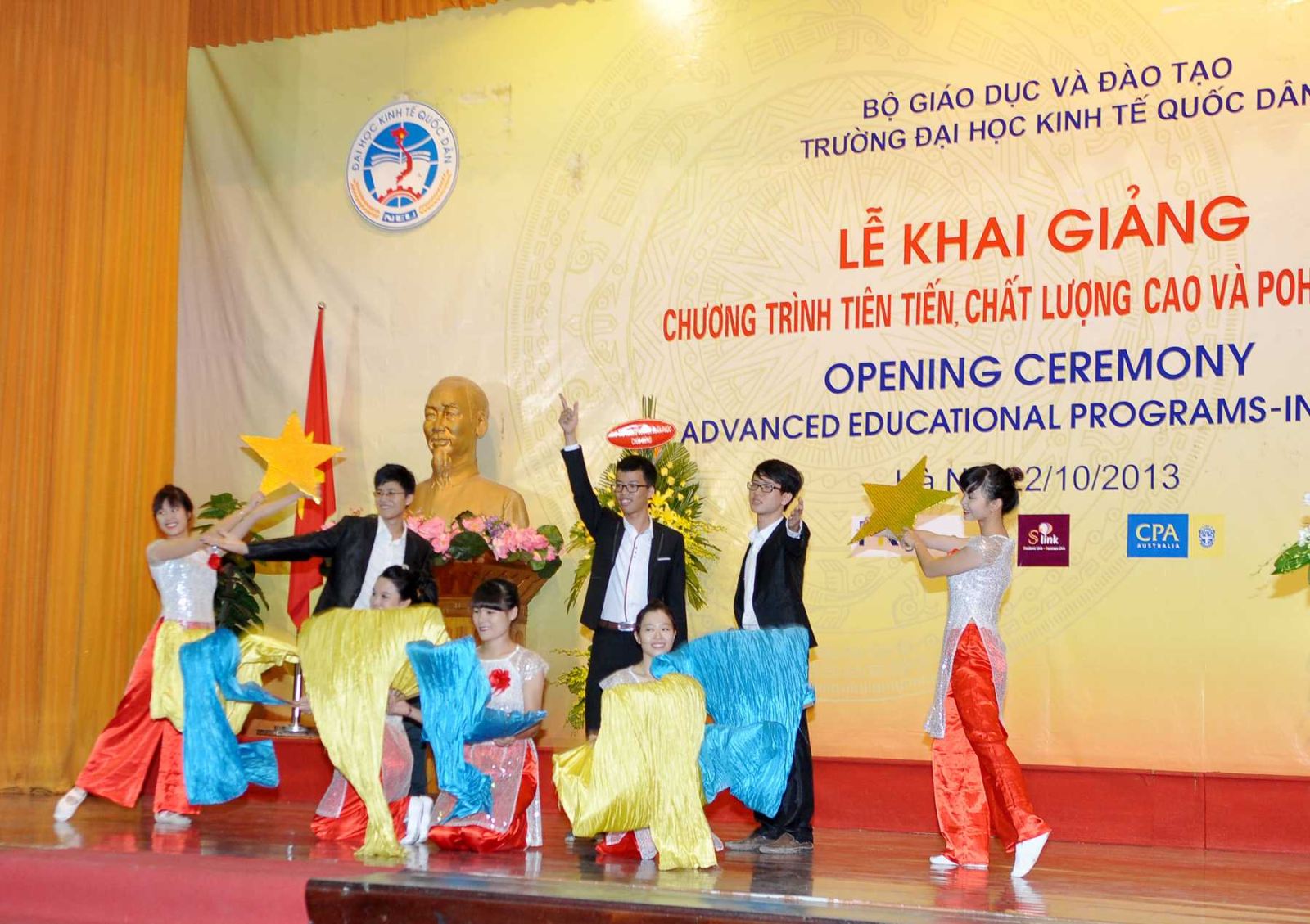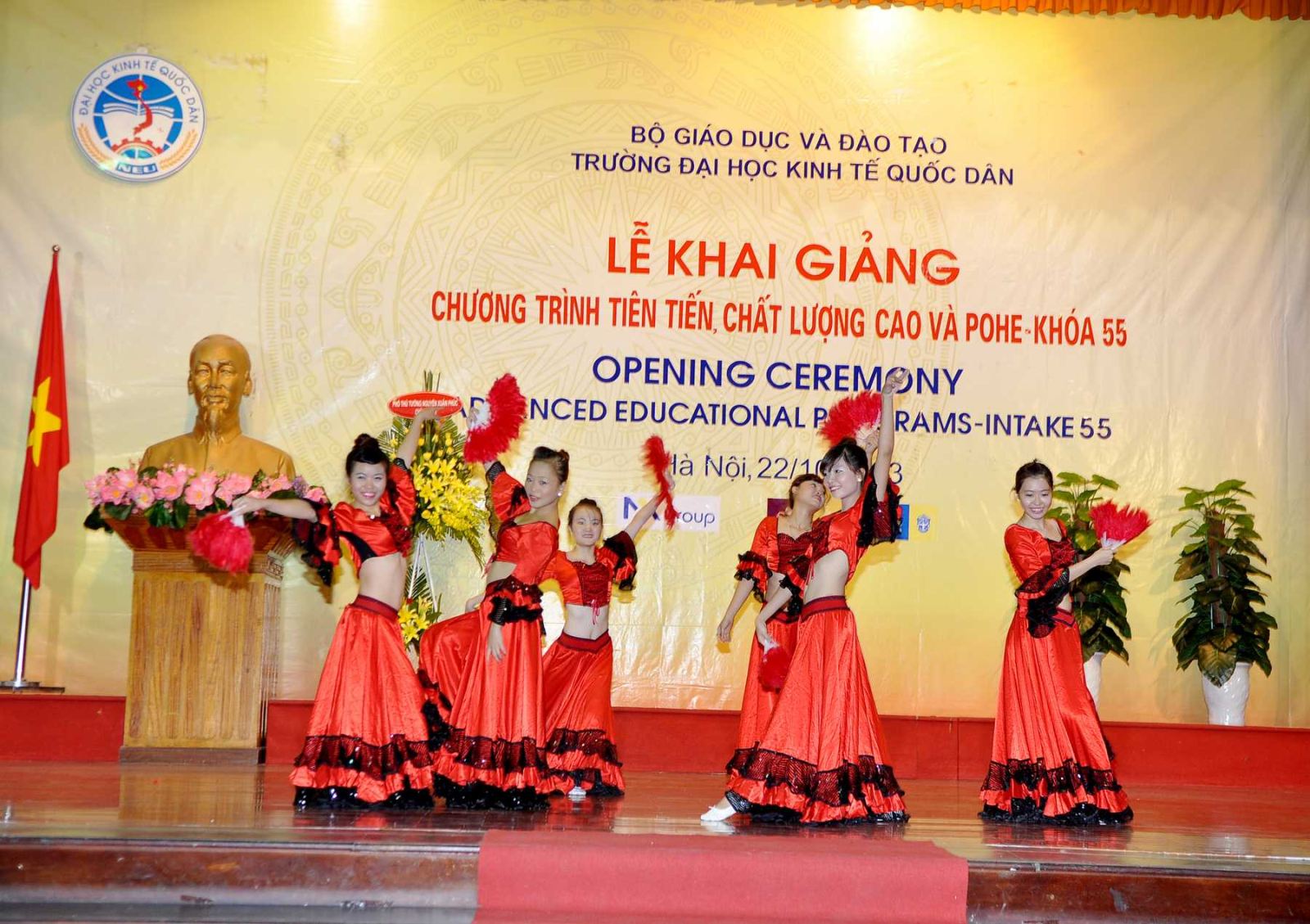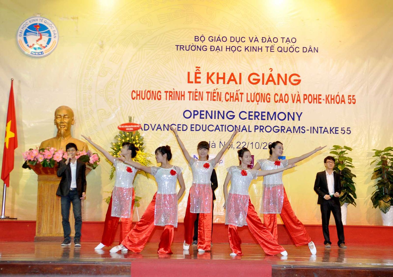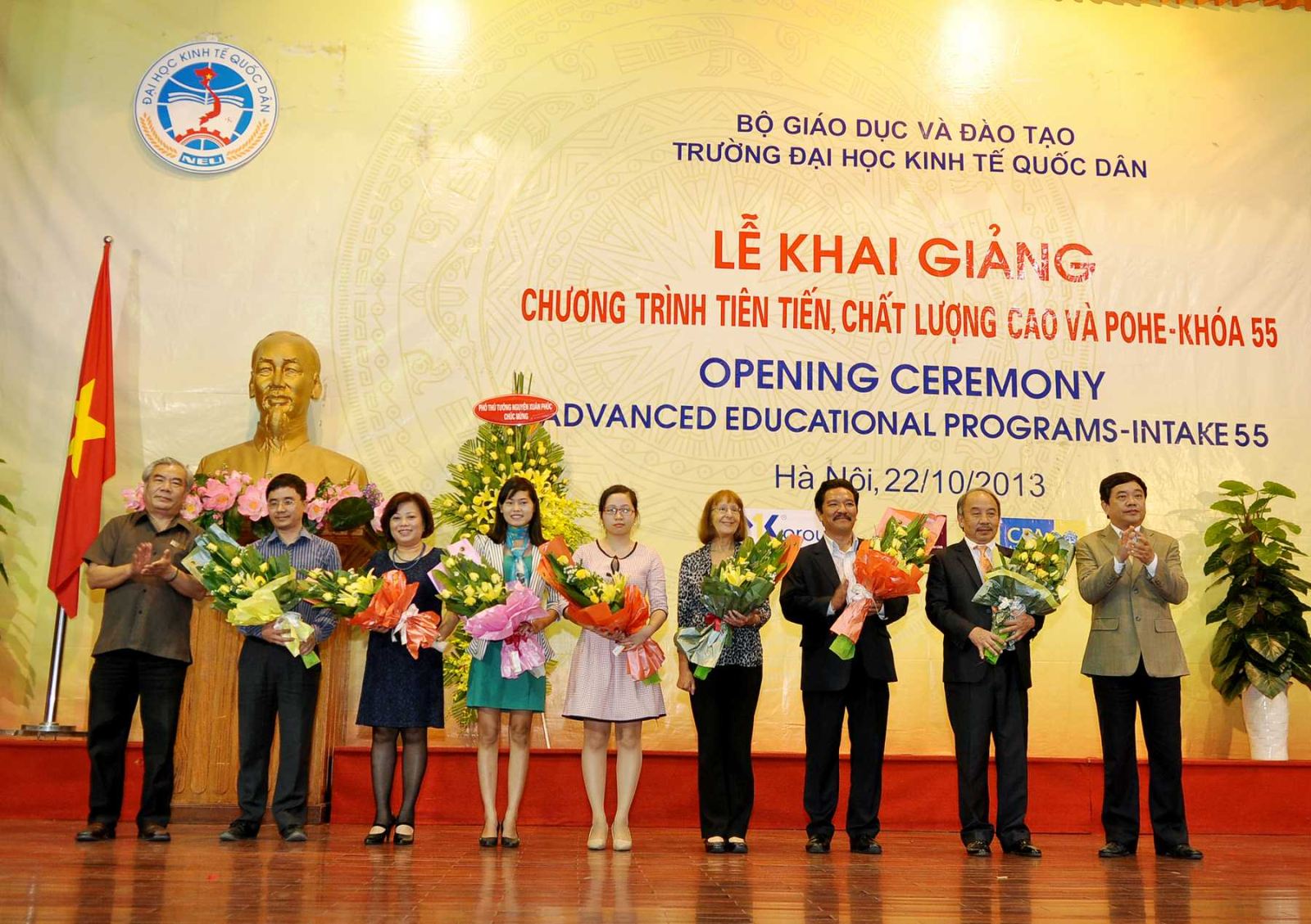 Trong không khí thi đua hướng về kỷ niệm ngày Nhà giáo Việt Nam, Sáng ngày 22/10/2013, tại Hội trường A, trường Đại học Kinh tế Quốc dân đã long trọng tổ chức Lễ khai giảng năm học mới cho hơn 650 sinh viên Chương trình Tiên tiến, chất lượng cao và POHE khóa 55.
