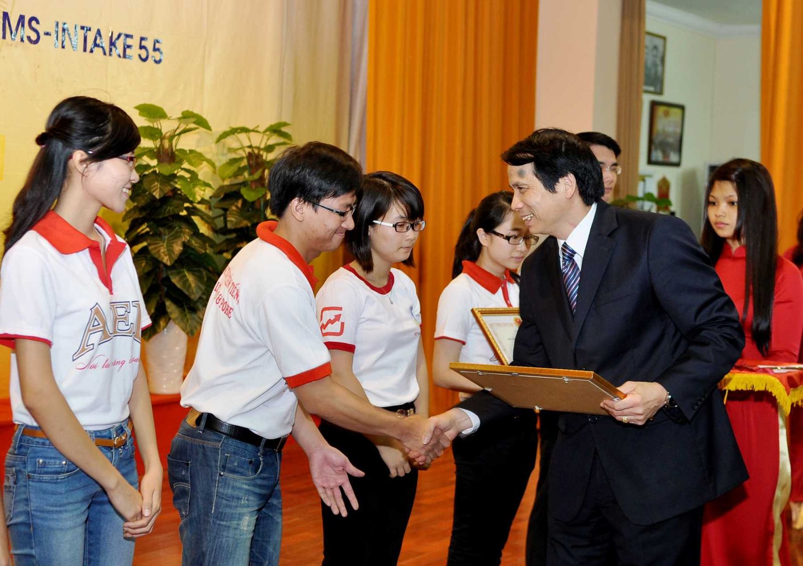 PGS.TS. Phạm Mạnh Hùng- Thứ trưởng BGD&ĐT, Bí thư Đảng ủy, Hiệu trưởng trao giấy khen cho các sinh viên có thành tích xuất sắc