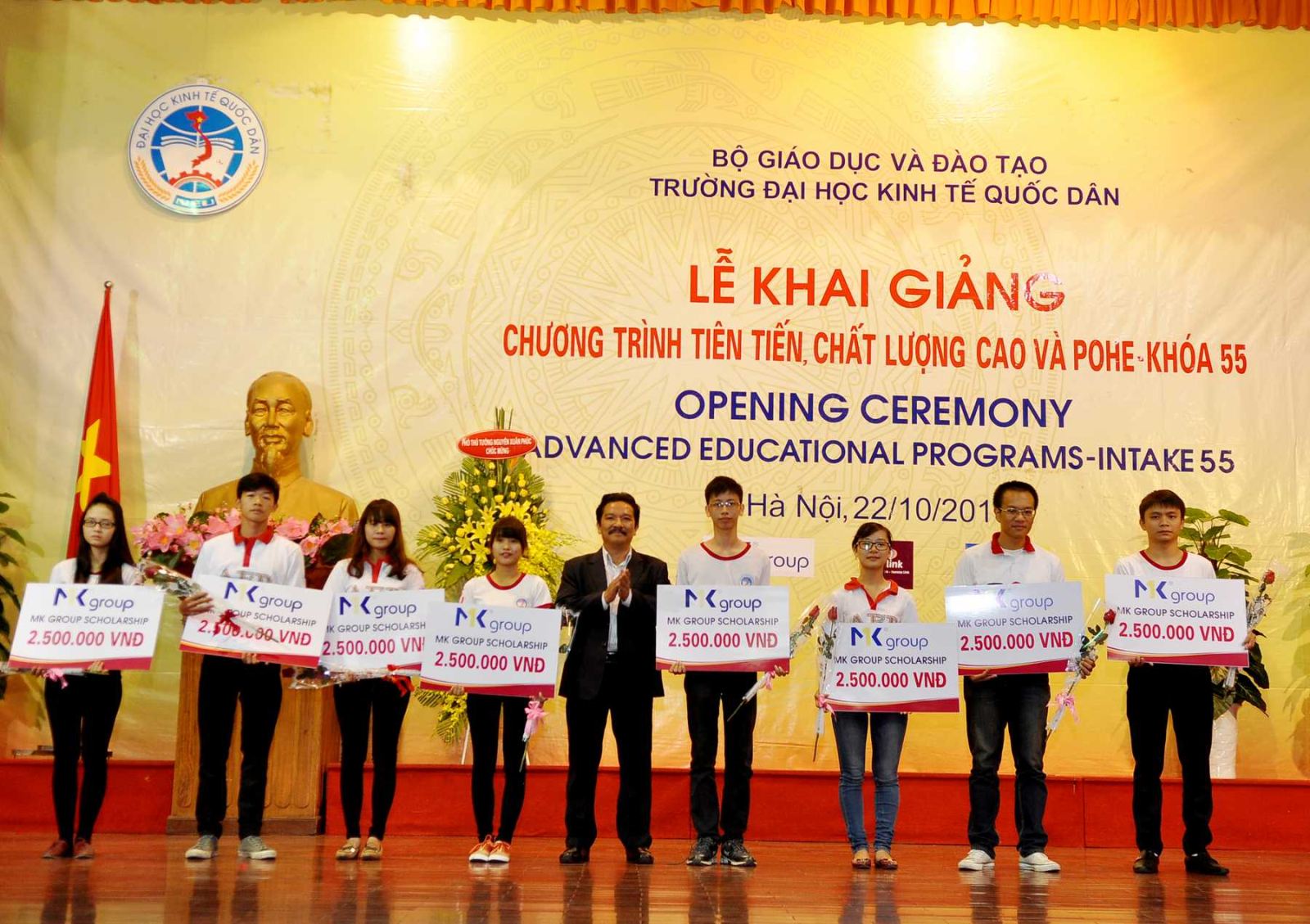 Ông Nguyễn Văn Hà trao học bổng của tập đoàn MK cho các sinh viên