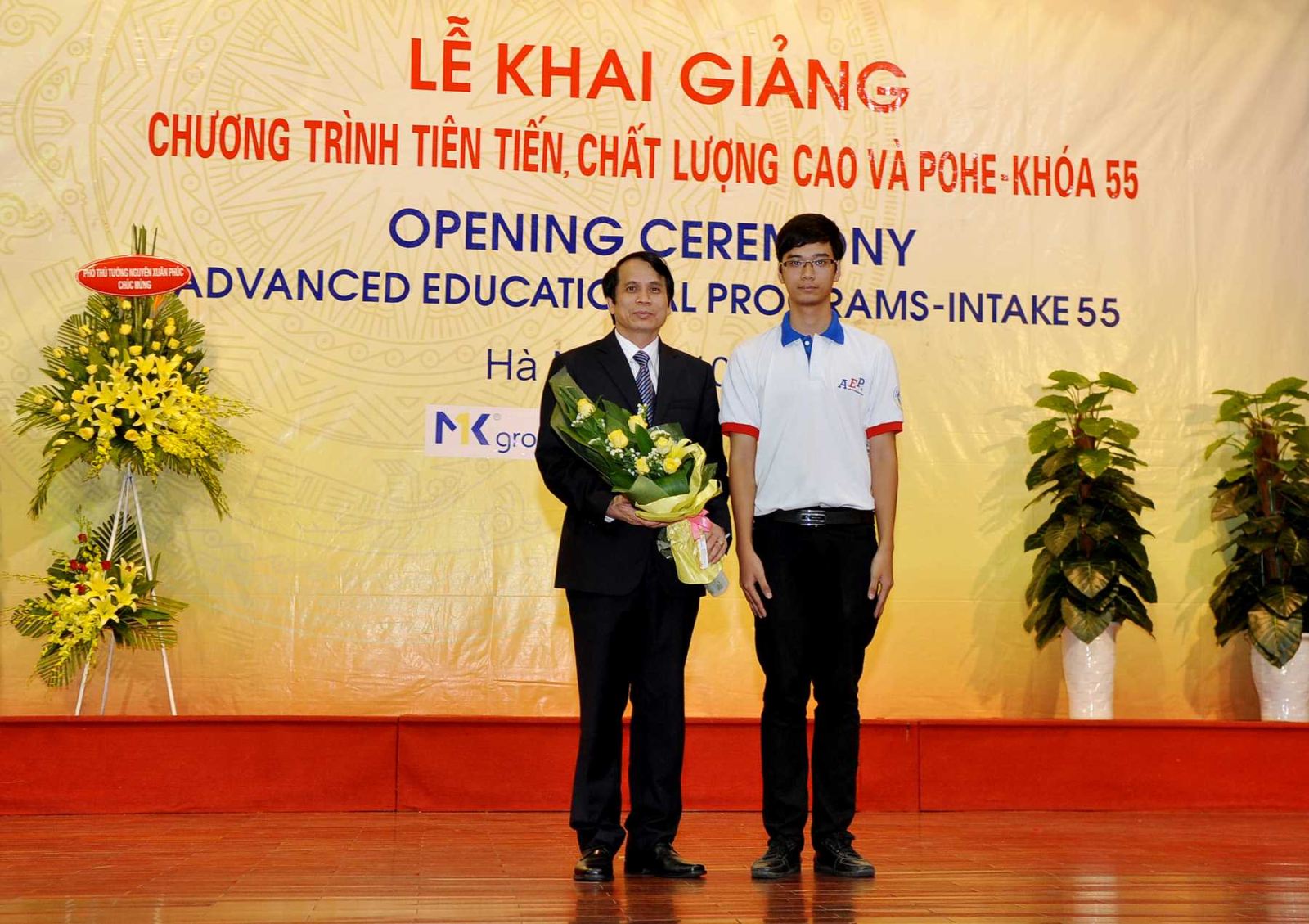 Thay mặt cho các tân sinh viên khóa 55 chương trình Tiên tiến, chất lượng cao & POHE, em Đỗ Quang Huy – sinh viên có thành tích xuất sắc thi vào ĐH KTQD với kết quả 27 điểm, điểm IELTS 6.5, đã phát biểu, bày tỏ niềm vui, niềm vinh dự và tự hào khi trở thành những sinh viên của Chương trình. Em cũng hứa với các thầy cô giáo sẽ cố gắng nỗ lực học tập, rèn luyện, tu dưỡng đạo đức để xứng đáng với sự quan tâm dạy dỗ của các thầy cô giáo.