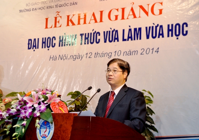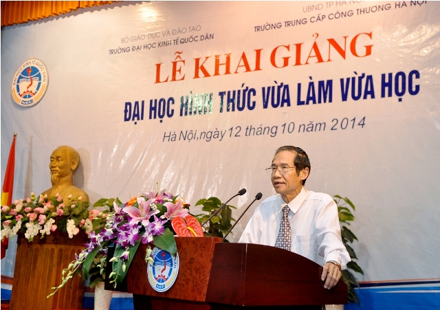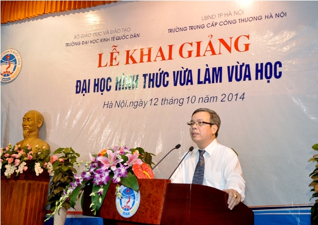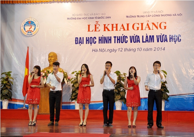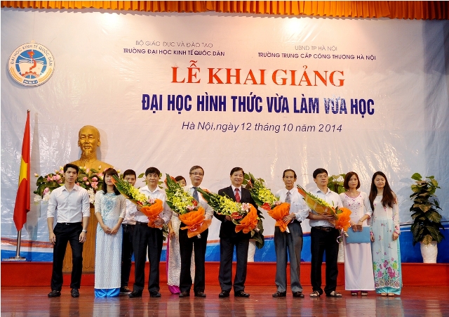 Sáng 12 tháng 10năm 2014, tại Hội trường A, trường Đại học Kinh tế Quốc dân đã long trọng tổ chức Lễ khai giảng cho 526  sinh viên đã trúng tuyển vào hệ Đại học hình thức vừa làm vừa học. Đến dự buổi lễ, về phía đơn vị liên kết đào tạo – Trường Trung cấp Công thương có: Ths.NGƯT.Nguyễn Minh Thi – Hiệu trưởng cùng các cán bộ của trường. Về phía trường Đại học  KTQD có GS.TS.Phạm Quang Trung – Phó Hiệu trưởng, GS.TS.Nguyễn Viết Lâm – Phó Bí thư thường trực Đảng ủy, Trưởng Khoa đào tạo Tại chức cùng đại diện lãnh đạo các đơn vị trực thuộc trường, các thầy cô giáo, các tân sinh viên.