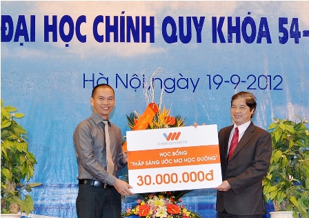 Cũng tại buổi lễ, có 5 nhà tài trợ đã đến dự và trao học bổng cho các em sinh viên (Trung tâm di động Vietnammobile, Công ty Bảo hiểm Ngân hàng Đầu tư và Phát triển Việt Nam, Ngân hàng Thương mại cổ phần Sài Gòn Thương Tín, Ngân hàng TMCP Xăng dầu Petrolimex, Quỹ học bổng và văn hóa Việt Nam Kumho Asiana). Trong đợt trao học bổng này, có khoảng 60 sinh viên được nhận học bổng với số tiền trị giá 321 triệu đồng.