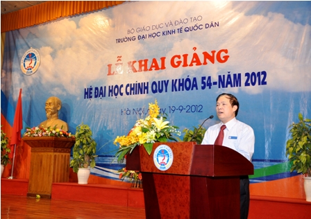 Tháng Chín mùa Thu, mùa của niềm vui tựu trường, khai giảng của các học sinh, sinh viên trên khắp cả nước. Hòa chung trong không khí đó, sáng 19 tháng 9 năm 2012, tại Hội trường A, Nhà văn hoá, trường Đại học Kinh tế Quốc dânđã long trọng tổ chức Lễ khai giảng năm học mới cho 4475 sinh viên K54 hệ chính quy.