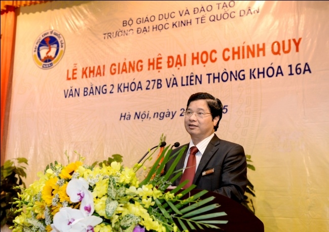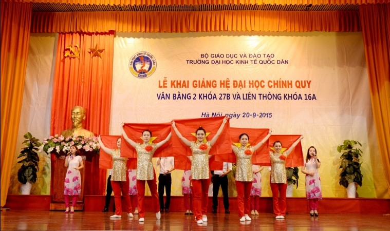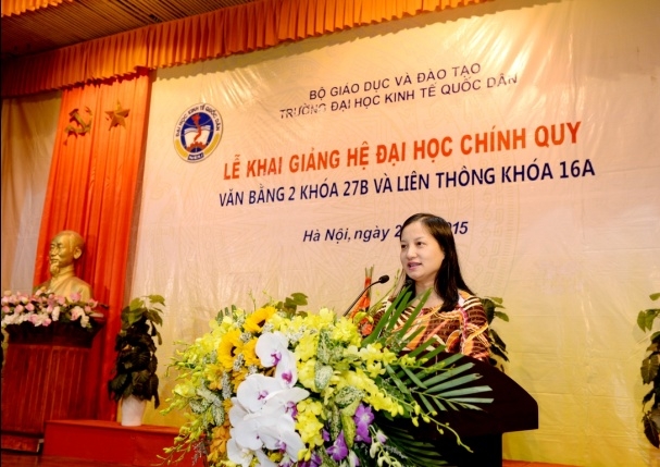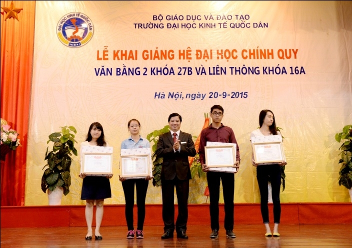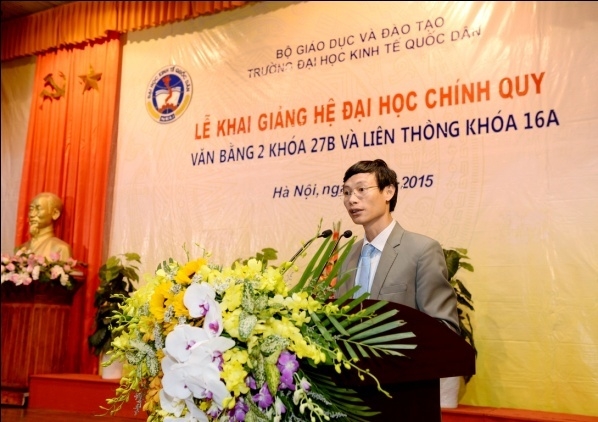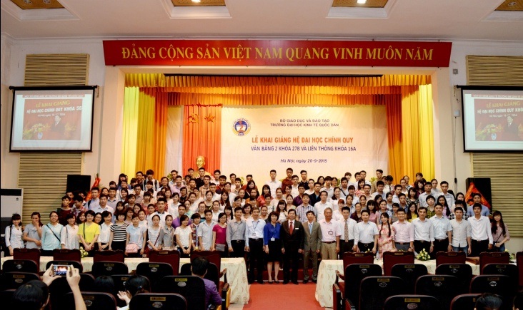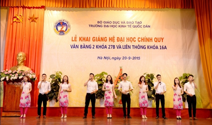 Chiều 20 tháng 9 năm 2015, tại Hội trường A, trường Đại học Kinh tế Quốc dân đã long trọng tổ chức Lễ khai giảng cho 127 sinh viên đã trúng tuyển vào hệ đại học chính quy văn bằng 2 Khóa 27B và 418 sinh viên hệ Liên thông Khóa 16A. Tới dự buổi lễ có GS.TS. Phạm Quang Trung – Phó Bí thư Đảng ủy, Phó Hiệu trưởng, PGS.TS.Trần Thị Vân Hoa – TV Đảng ủy, Phó Hiệu trưởng, PGS.TS.Hoàng Văn Cường – TV Đảng ủy, Phó Hiệu trưởng cùng đại diện lãnh đạo các viện, trung tâm, các phòng ban trong trường, các thầy cô giáo, các cơ quan phát thanh – truyền hình và các tân tân sinh viên.