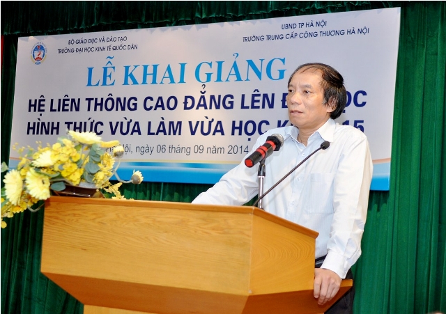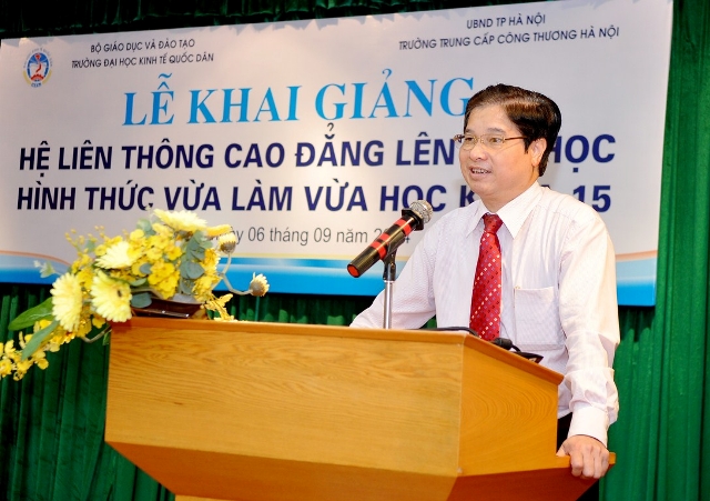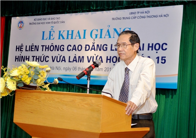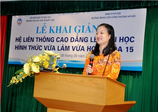 Phát biểu tại buổi lễ, GS.TS.Phạm Quang Trung, Phó Hiệu trưởng nhiệt liệt chúc mừng các em sinh viên đã vượt qua kỳ thi tuyển sinh và hôm nay chính thức trở thành những tân sinh viên của trường Đại học Kinh tế Quốc dân. Giáo sư Phó Hiệu trưởng cũng khẳng định, nhà trường sẽ phối hợp với trường Trung cấp Công thương Hà Nội, tạo điều kiện thuận lợi nhất để các tân sinh viên học tập tốt và mong muốn các sinh viên phải xác định mục đích học tập đúng đắn, chấp hành tốt nội quy, quy chế của Bộ giáo dục & Đào tạo, của hai trường, hoàn thành tốt nhiệm vụ học tập của khoá học.
