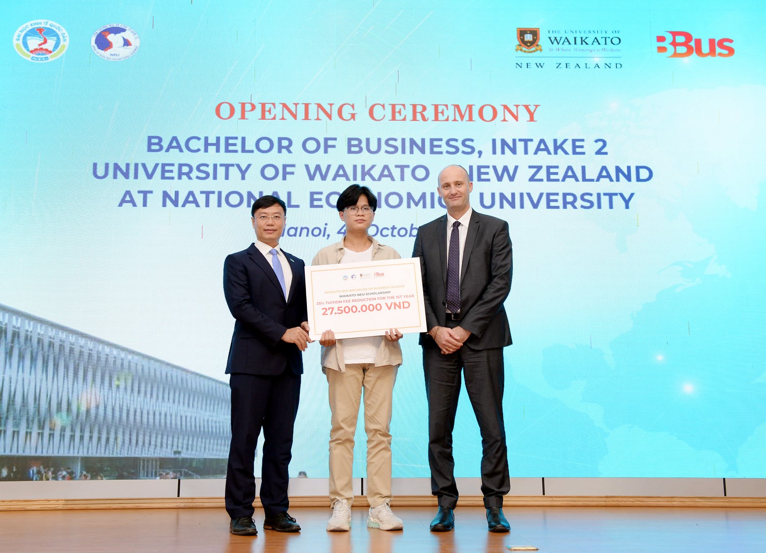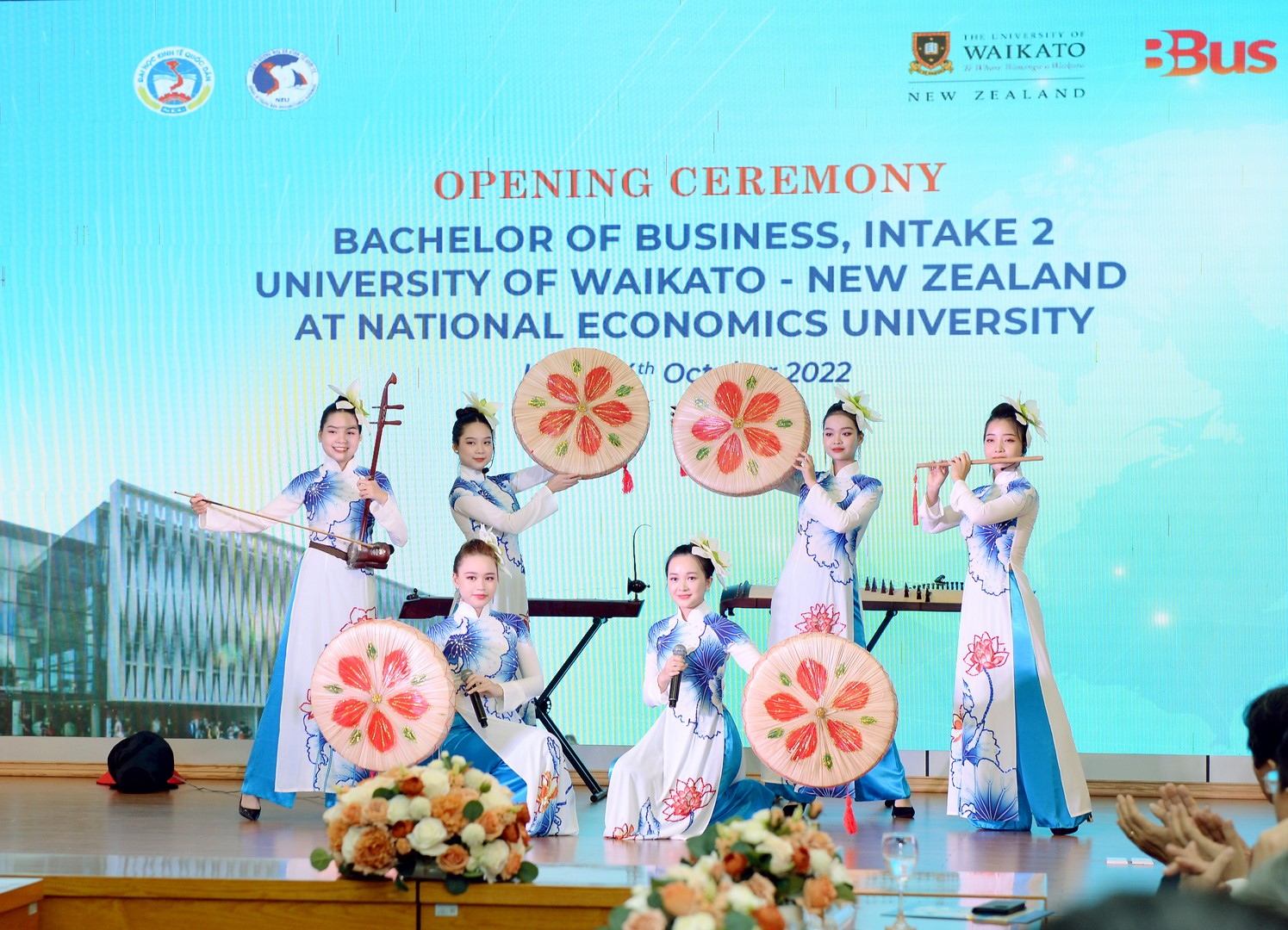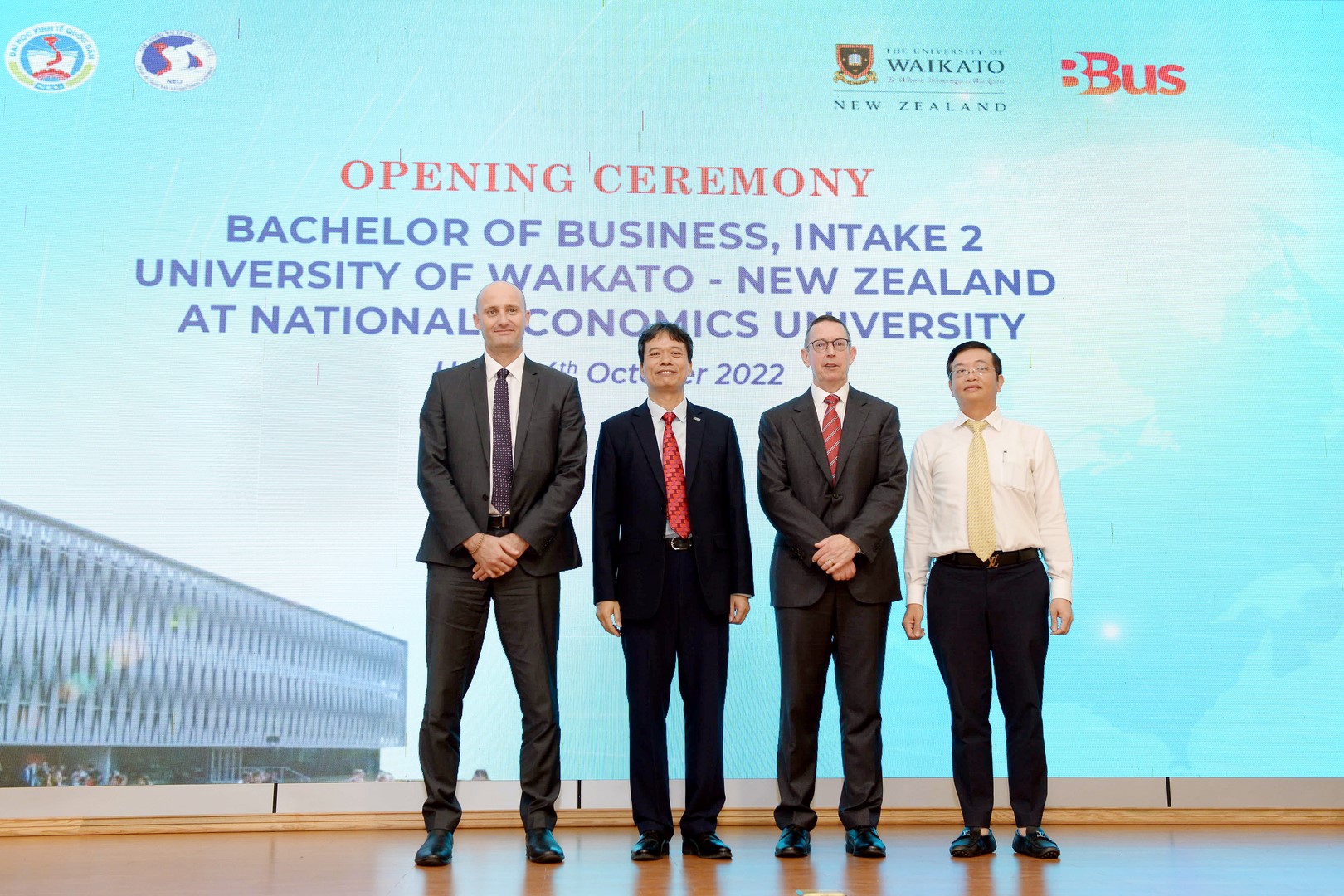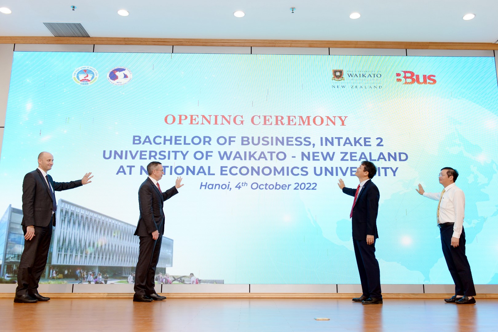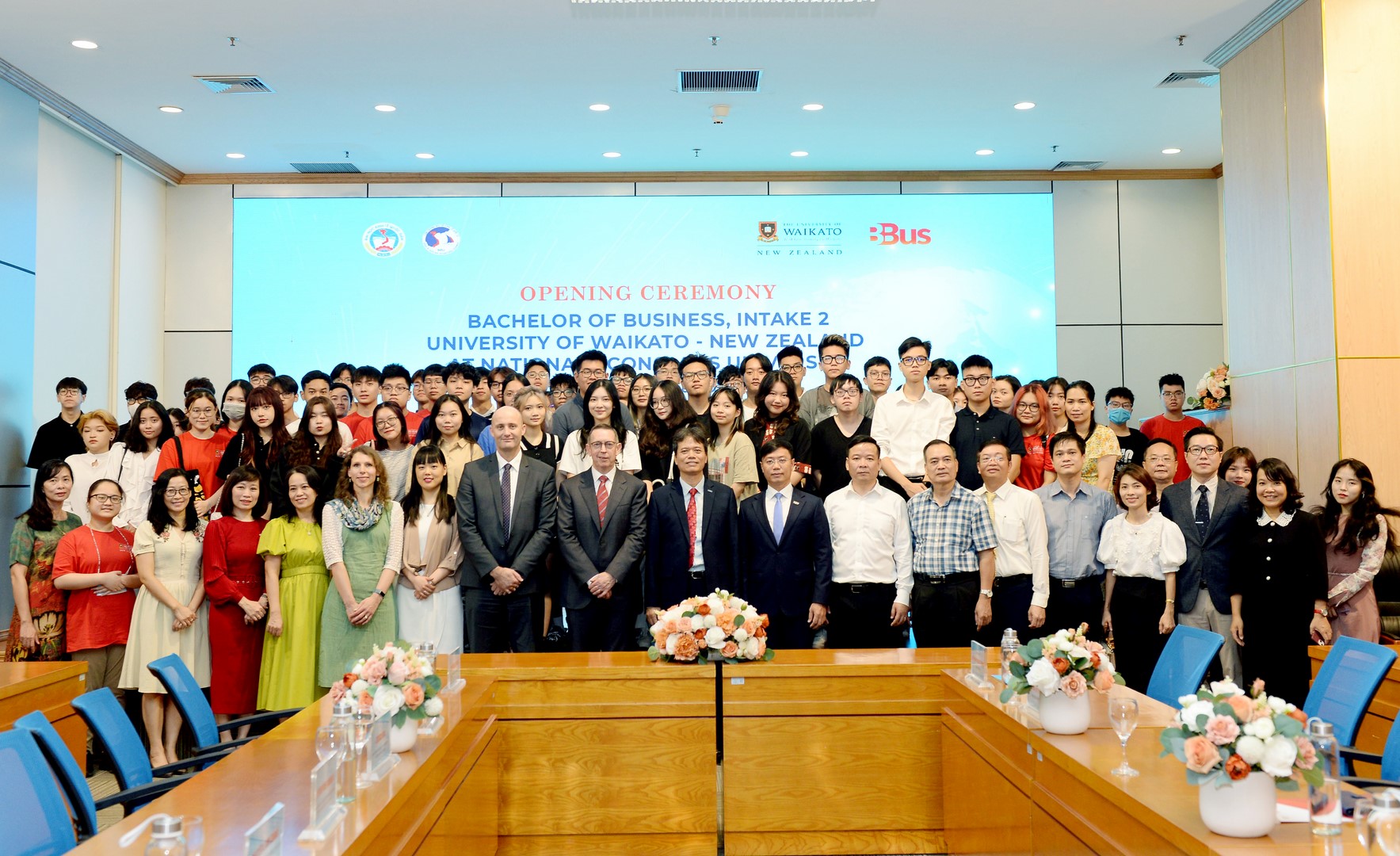 Sáng ngày 04/10/2022, Trường Đại học Kinh tế Quốc dân đã trang trọng tổ chức Lễ Khai giảng khóa 2 chương trình liên kết đào tạo Cử nhân Kinh doanh giữa Đại học Waikato, New Zeland và Trường Đại học Kinh tế Quốc dân.