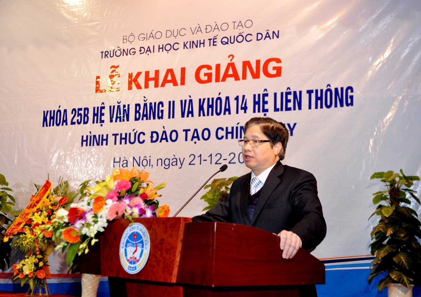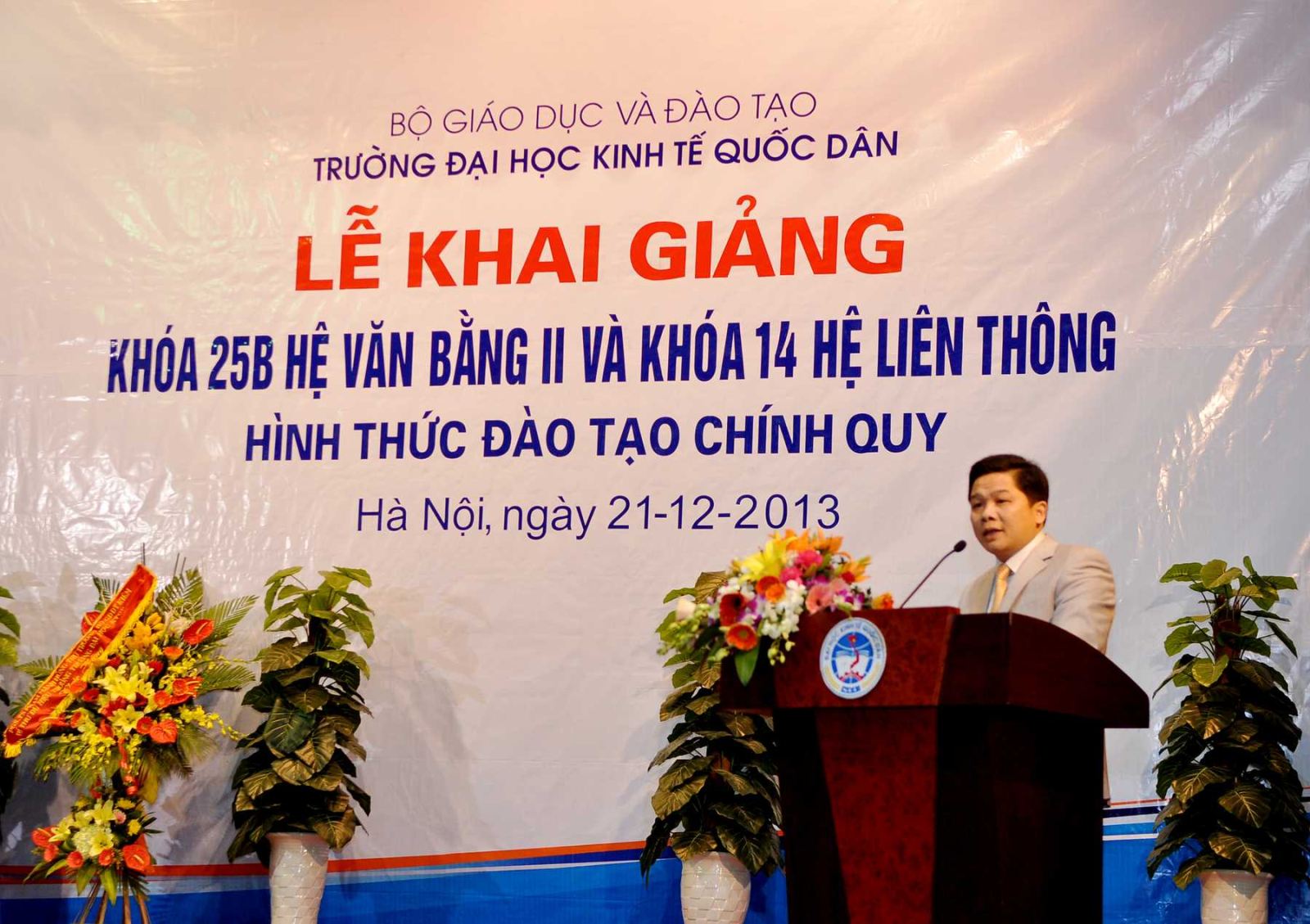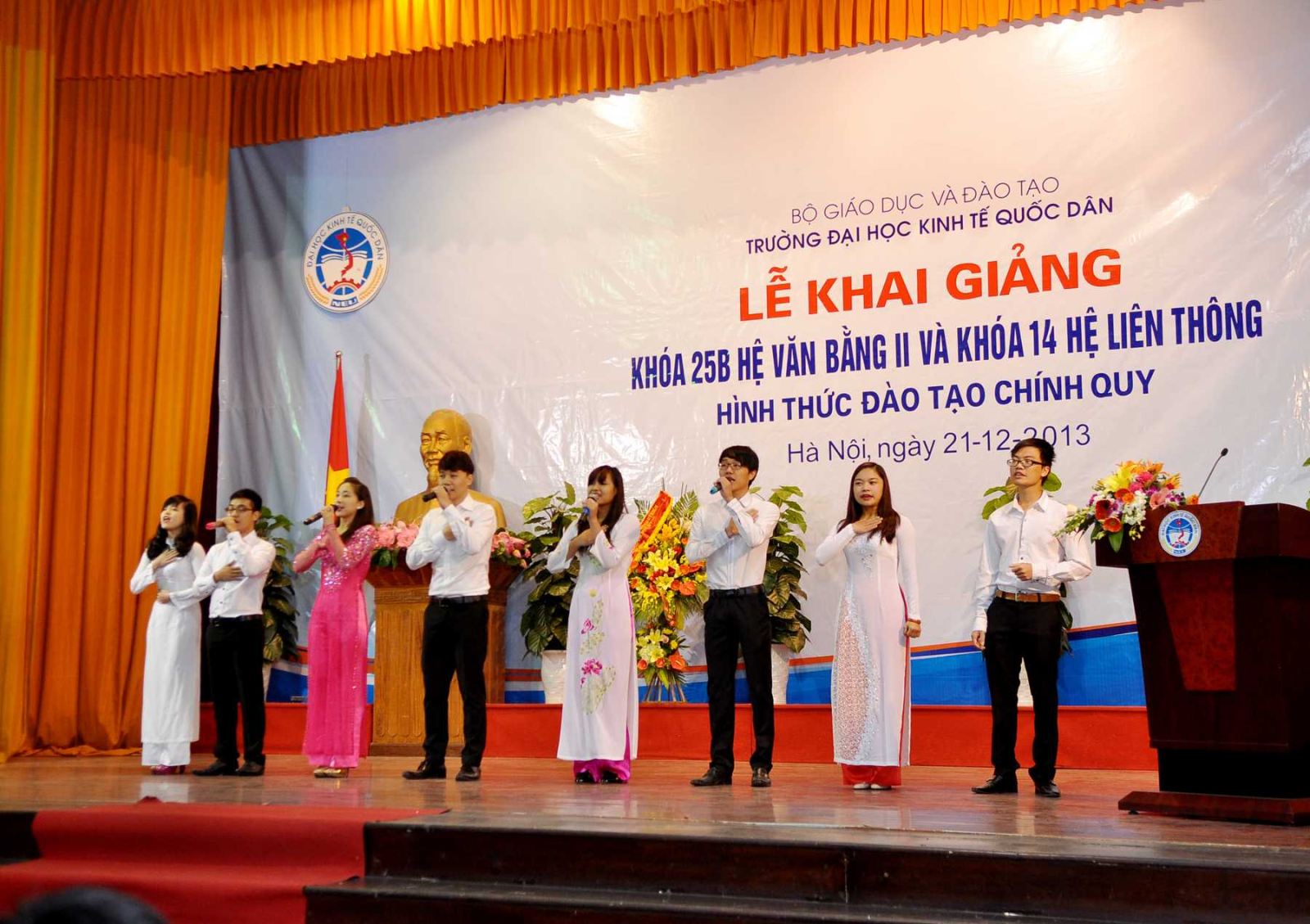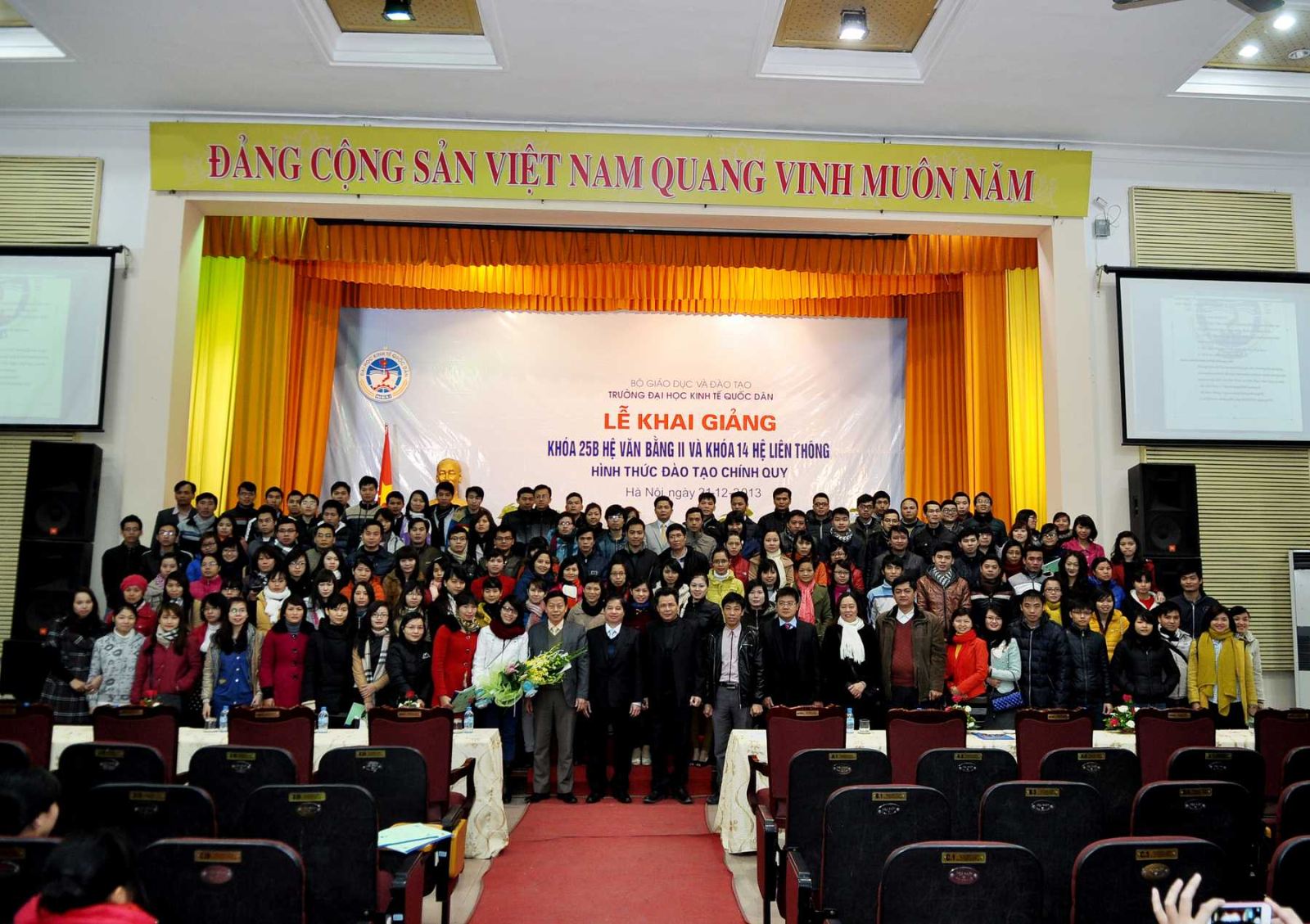Sáng 21 tháng 12 năm 2013, tại Hội trường A, Trường Đại học Kinh tế quốc dân đã long trọng tổ chức Lễ khai giảng cho 318 sinh viên Khóa 25B hệ văn bằng II và 101 sinh viên Khóa 14 hệ liên thông trình độ từ cao đẳng lên đại học, hình thức đào tạo chính quy. Đối với hệ văn bằng 2, đây là khóa thứ 3 đào tạo theo hệ thống tín chỉ và quản lý bằng phần mềm Quản lý đào tạo trực tuyến. Đối với hệ liên thông từ cao đẳng lên đại học, đây là khóa đầu tiên thực hiện theo thông tư 55/2012/TT-BGDĐT của Bộ Giáo dục và Đào tạo, theo đó sinh viên học tập như sinh viên hệ chính quy, học cùng với sinh viên chính quy.