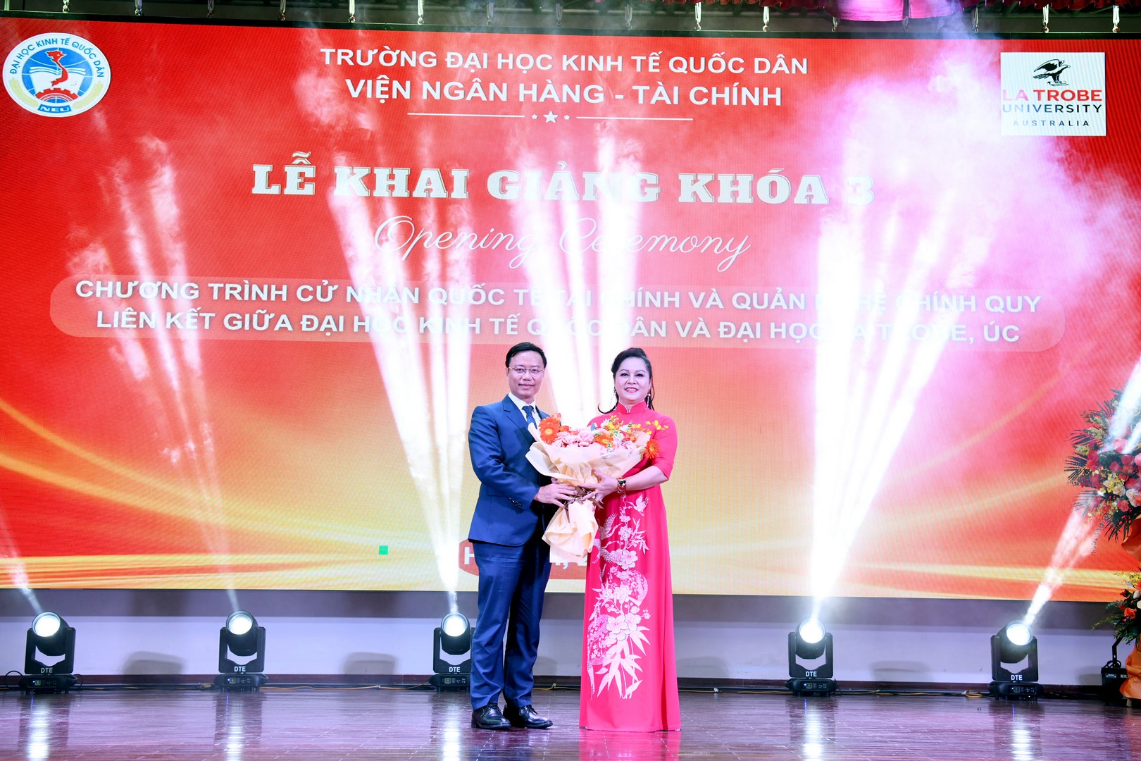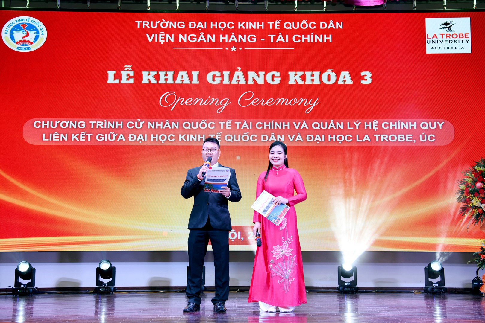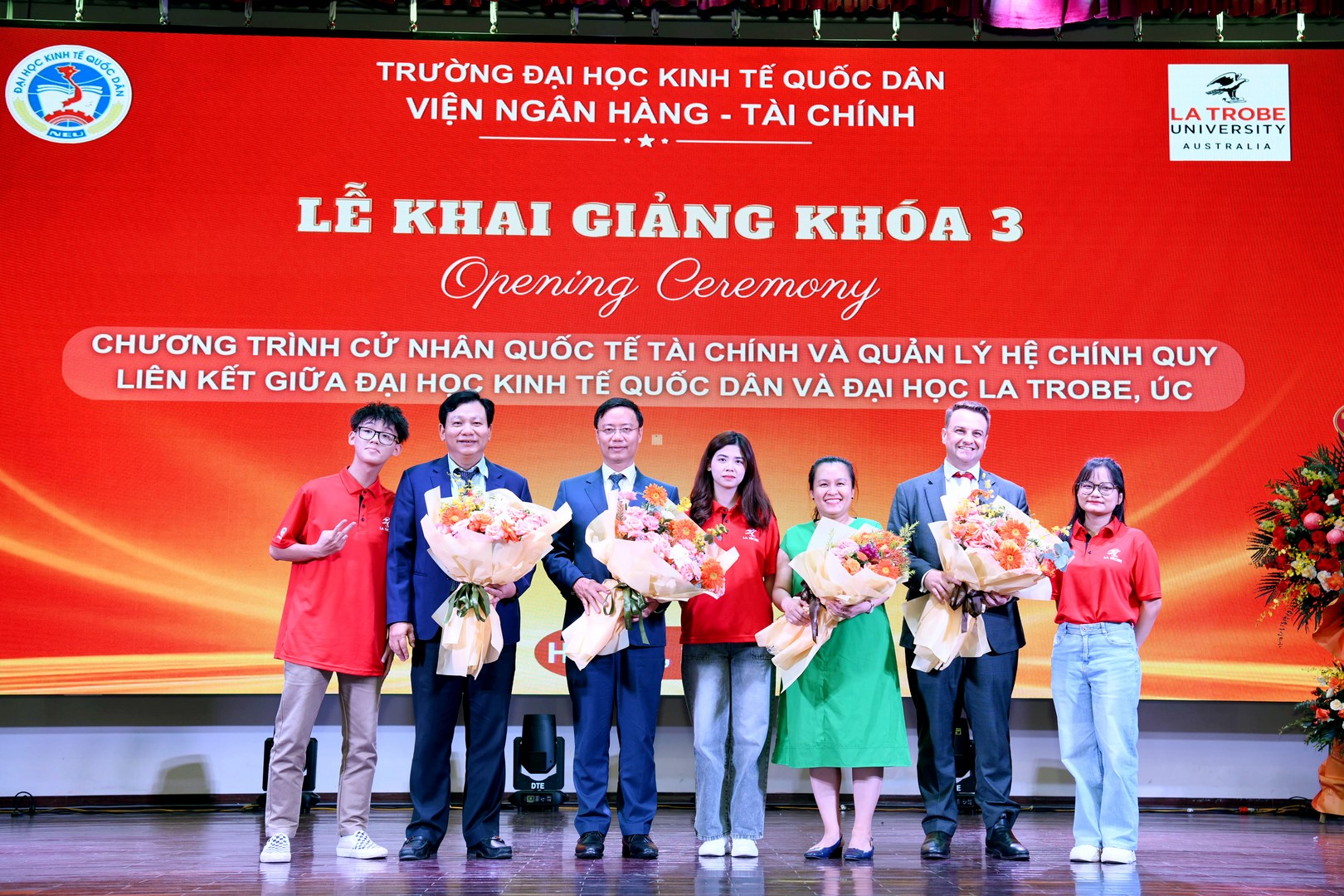 Về phía Trường Đại học Kinh tế Quốc dân có: PGS.TS Bùi Đức Thọ – Bí thư Đảng uỷ, Chủ tịch Hội đồng trường; PGS.TS Hoàng Xuân Quế – Trưởng ban điều hành Chương trình, Viện trưởng Viện Ngân hàng – Tài chính; cùng các đồng chí trong Đảng ủy trường, Hội đồng trường; đại diện lãnh đạo các Trường, Khoa, Viện, Phòng ban, Trung tâm, đại diện các tổ chức chính trị – xã hội; các thầy cô trong Ban Chỉ đạo và Ban điều hành Chương trình liên kết đào tạo với Đại học La Trobe, các giảng viên Viện Ngân hàng – Tài chính, sinh viên các Khoá 1, 2 và đặc biệt là sự hiện diện của 176 tân sinh viên khóa 3 của chương trình và gia đình.